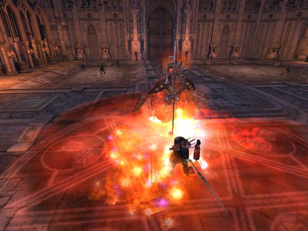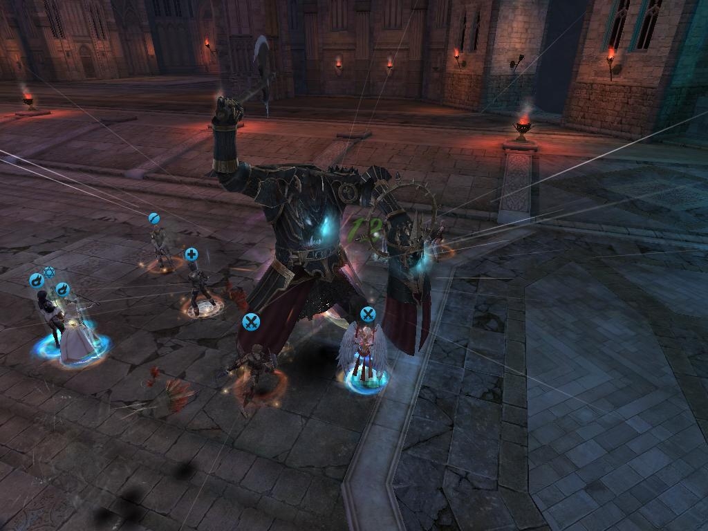 只要跟 memento mori 聖經進行對談後,即可開啟「混沌騎士」副本,開啟後可以有 12 位玩家一起入場,每位玩家每天能夠進入副本一次。玩家需要引導怪物進入到魔法陣後再殺掉,一旦殺死越多怪物,魔法陣就會集滿越多能量,等到能量滿了之後,魔王的能力就會跟著變強,這個時候只要打倒魔王,就可以獲得較好的獎勵。