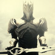 陌生人的兜帽掉了下來,露出一頂遮住整張臉的銀色頭盔。他等怪物們退到縮成一團的鎮民外圍,然後舉起上面沾著死去怪物鮮血的利劍,指向通往城鎮之外的大開口。「出去。永遠不要回來。」