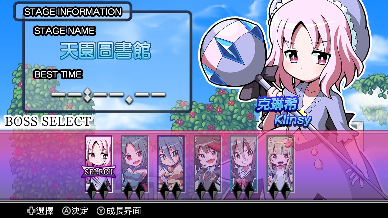 人物造型為平面Cute版兩頭身人物造型,立繪則是調皮可愛的喜劇漫畫風,遊戲開始前需要從六大頭目任意選擇一個,進入她們支配的世界開始闖關,各世界登場的怪物造型、陷阱設置、背景設計,甚至是場景音樂更會因為關卡頭目的屬性而有所不同。簡單介紹一下六大頭目中個人最喜歡的角色,就是穿著學生制服的黑社會少女〝布拉德〞,她所屬的【荒原】到處充滿枯木和監獄,彷彿進入《惡魔城》場景進行探險,另外〝克琳希〞所屬的【圖書館】也完美體現出知識與魔法的奇幻風格,每次進入新的世界都是一種全新的感受。總體來說,《魔神少女》是一款玩起來沒有任何壓力的作品,繁體中文化的文本內容更是一大優點,玩膩3A大作了嗎?來試試看這款清新有趣的小品遊戲吧!