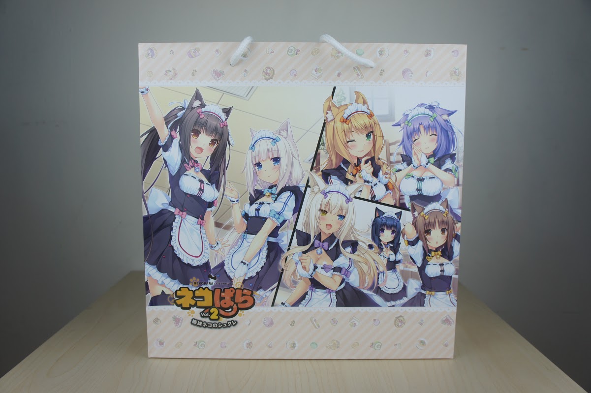 正式開始介紹遊戲內容之前,筆者想先感謝友人贊助從 Comic Horizon 排隊購得的《NEKOPARA Vol. 2》豪華套裝組給我,這裡簡單介紹一下豪華版內容包含哪些內容,首先是繪有時雨與六姊妹貓娘的精緻紙袋,沒有足夠恥力無法拿在大街上閒逛,接下來就是一張 A3 掛軸、兩本 CG 畫冊、一份悠遊卡套組、以及二零一五年月曆一本,這次豪華套裝組除了包含《NEKOPARA Vol. 2》遊戲光碟以外,也附贈《NEKOPARA Vol. 1》與《NEKOPARA Vol. 2》主題曲專輯,整體來說這套兩千五百元豪華套裝組真的非常物超所值。