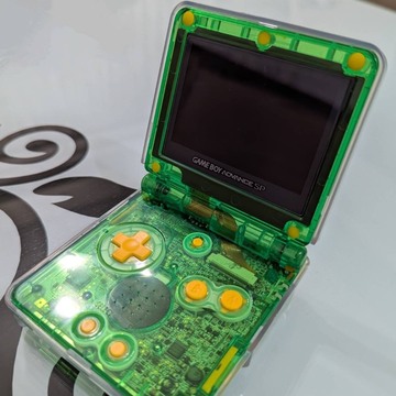 這款「火影橘 SP」的 GBA SP 主機的配色,是以橘色的機身搭配上青色的按鈕,上蓋並印有「火影忍者」作品中的「木之葉標誌」,是一款配色與設計非常搶眼醒目的特別版 GBA SP 主機。