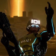 用左手張開護盾。由於尺寸不算大,不確實置於子彈軌道上就無法防禦攻擊。另外多次使用會使效能降低
