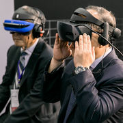 論壇觀展者體驗廠商夢想動畫的阿根那射擊 VR 遊戲