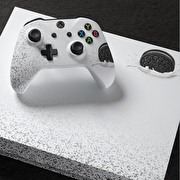 這款活動限定的特別款 Xbox One X 同捆組為針對美國當地的限量非賣品,內含白色與銀灰色雙色設計的白金限量版 Xbox One X 主機,同捆的控制器則是換成白色特別版的 Xbox 菁英無線控制器,並附有 Xbox Game Pass 3 個月會籍與 Xbox LIVE 金會員 3 個月會籍的兌換代碼卡。