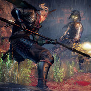 召喚濡女,讓敵人暴露在詛咒視線之下的妖怪技。成功讓敵人麻痺便是攻擊的大好機會,也能放著無法動彈的對手不管向前邁進。