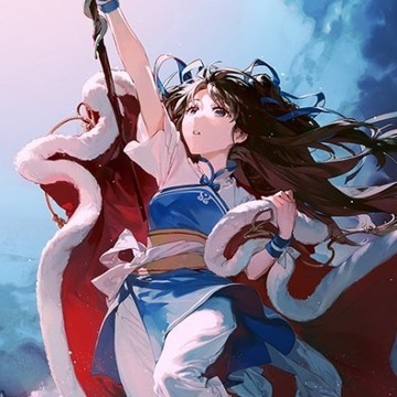 ;身穿聖靈披風、手持天蛇杖的趙靈兒站在一個巨型蓮花上。