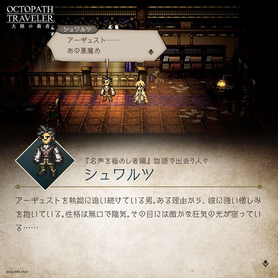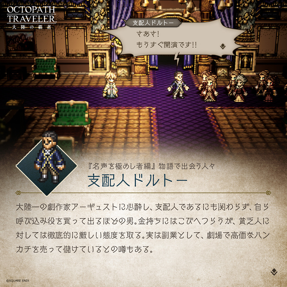 歧路旅人:大陸的霸者(暫譯,オクトパストラベラー 大陸の覇者)》(iOS/Android)今日公開主線故事「極盡名聲者」的預告 PV,以及該故事線中的重要人物介紹。