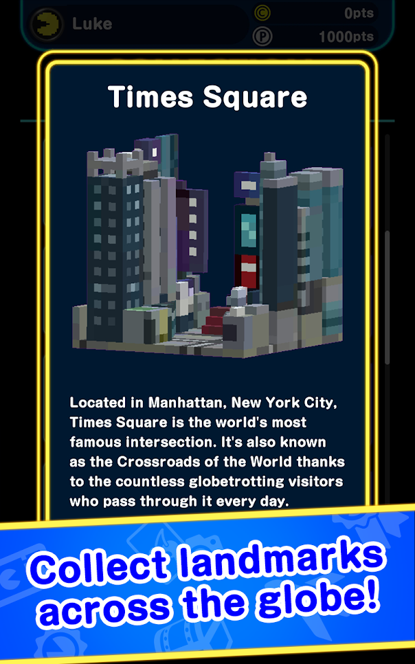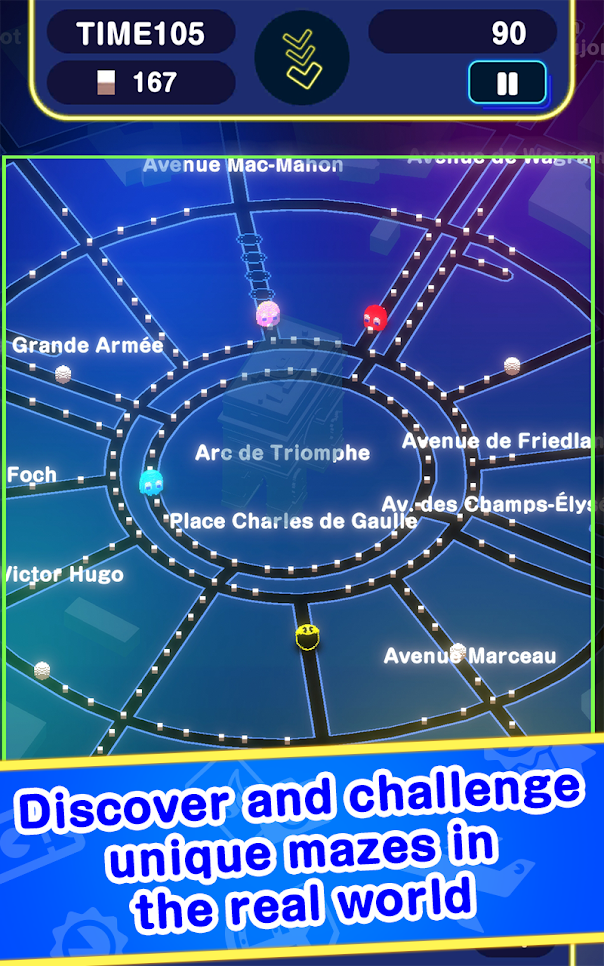 PAC-MAN GEO》以今年迎來誕生 40 周年的經典大型電玩《小精靈(PAC-MAN)》為主題,是款能在現實世界中體驗《小精靈》的地理情報遊戲(Geographic Information Game),玩家能選擇紐約、巴黎、東京等真實存在的城市來製作迷宮,收集散落於世界各地觀光景點的豆子。
