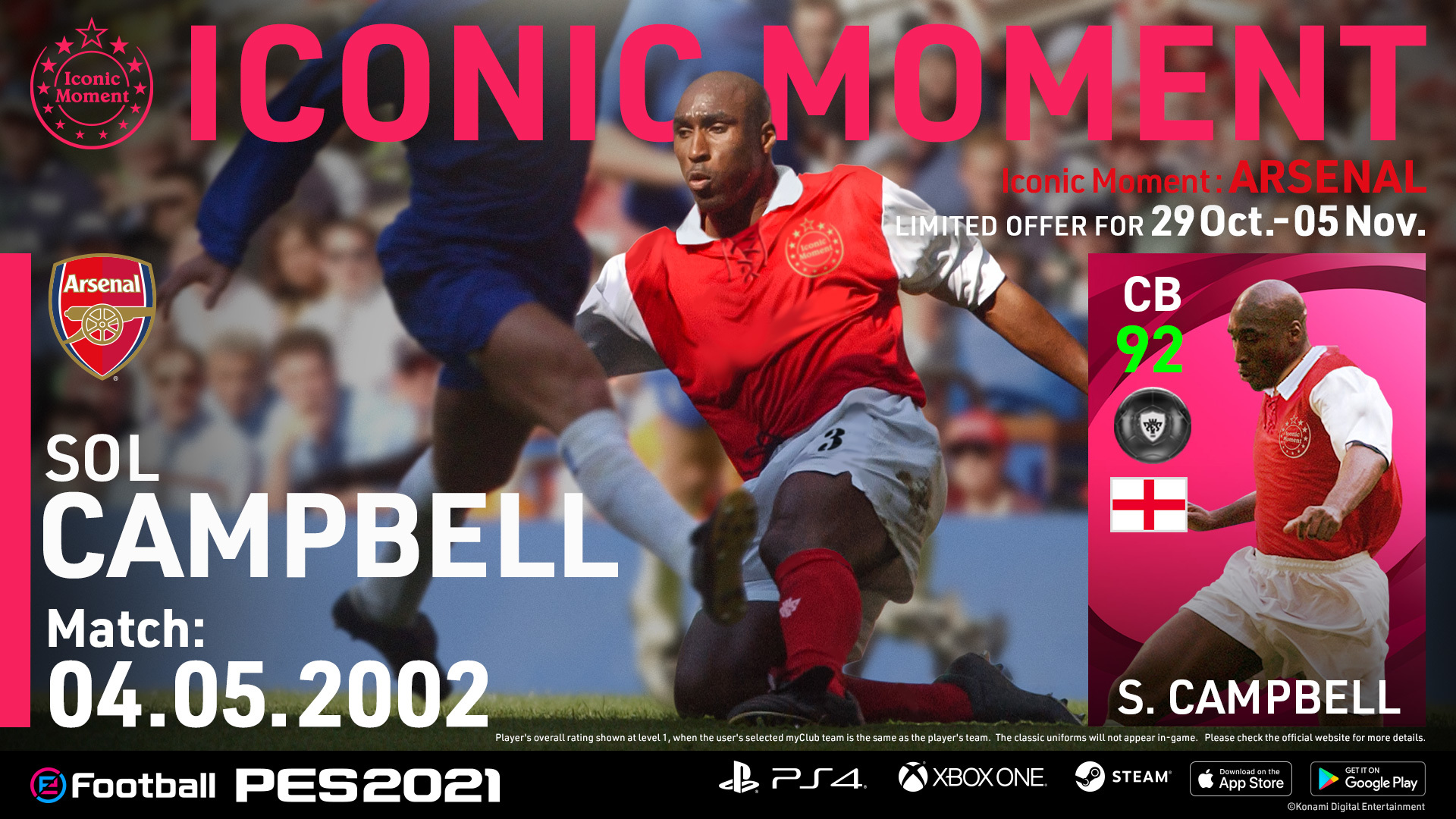 10 月 29 日 – Sol Campbell(標誌性比賽:2002 年 5 月 4 日)