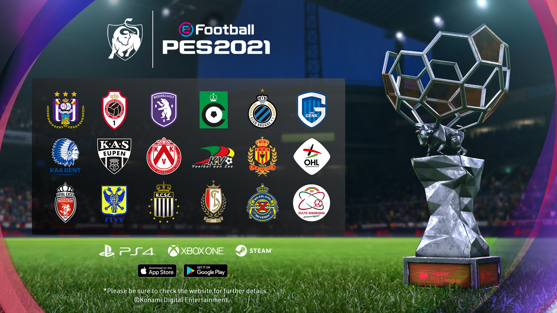 本次遊戲封面是歷史上首次同時包含兩大偉大的傳奇足球運動員;巴賽隆納足球俱樂部的梅西和尤文圖斯的朗拿度。遊戲封面還延續了 eFootball PES 對年輕精英的傳承,採用了曼聯的拉什福德和拜仁的戴維斯。 所有四位大使也都會出現在全新的合作夥伴球會版中。