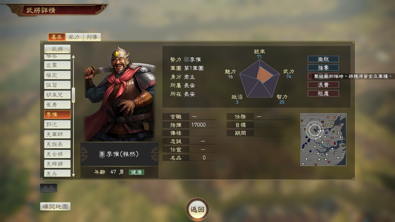 以智謀著稱的賈詡擁有能提升偽報成功率的個性「教唆」