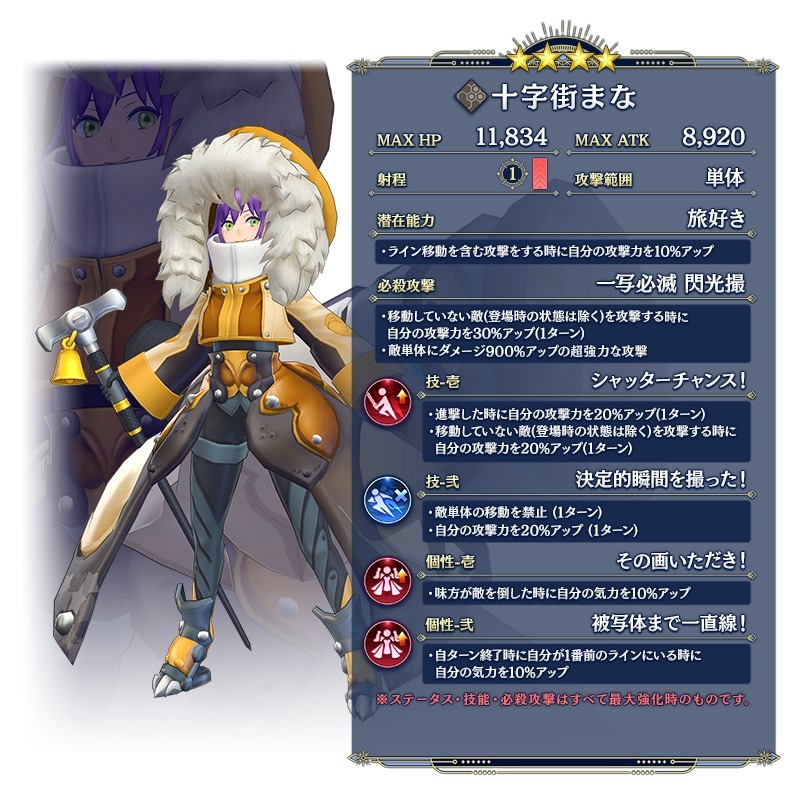 另外,今日開始也展開了期間限定調查「奪還開始紀念 日本橫斷少女調查」、「九州少女每日更換 Pick Up 調査」,玩家將有機會獲得以下少女&靈子裝束。