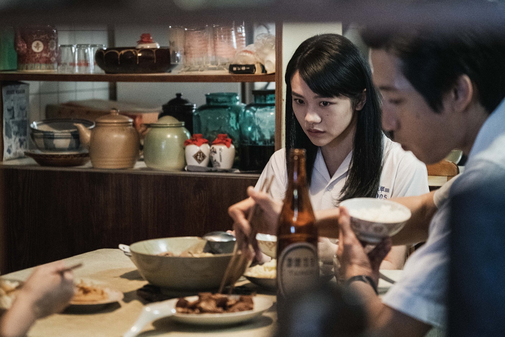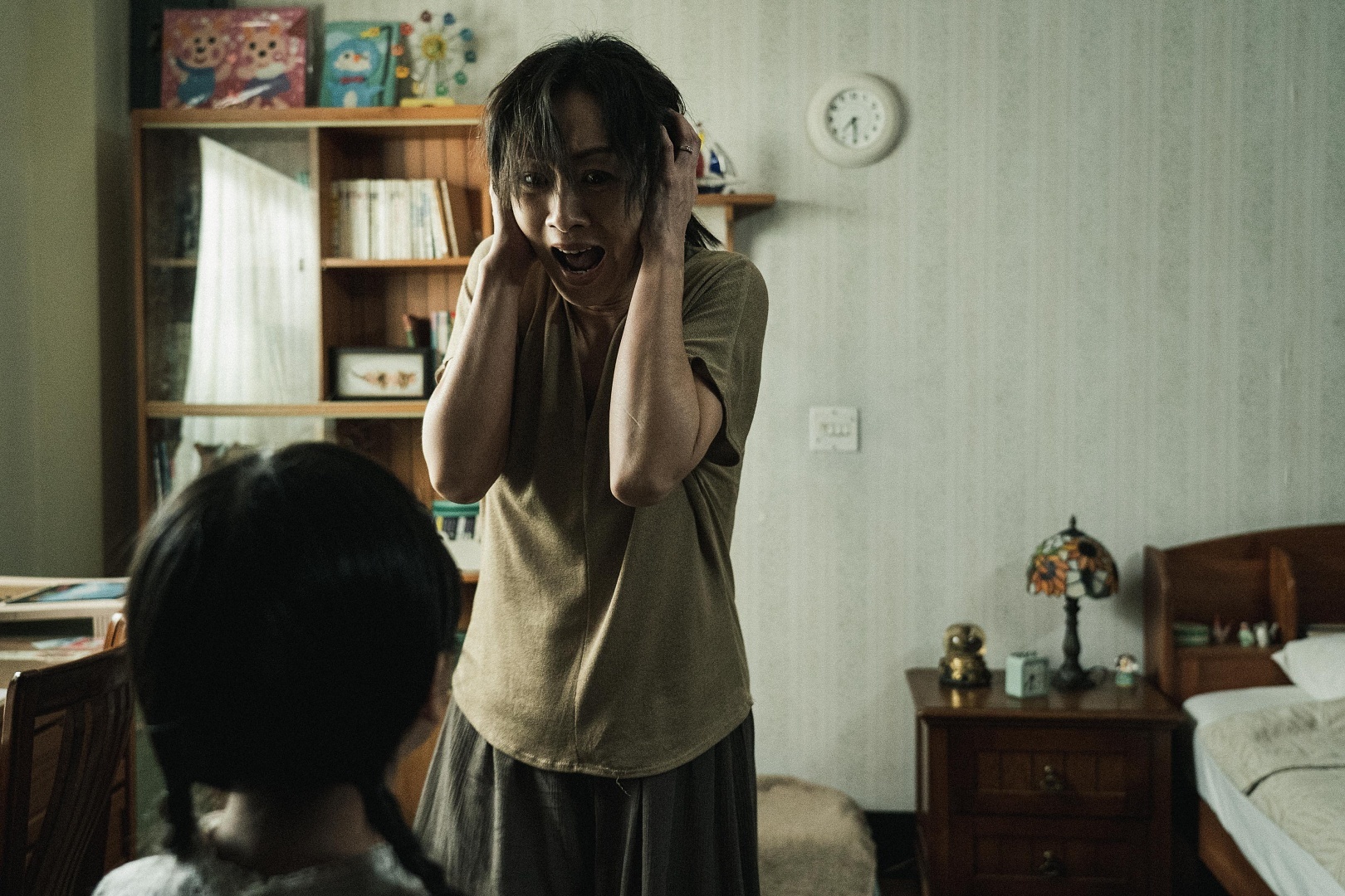 此外,上週播出的《返校》影集集數中,飾演「學妹」李玲葦母親的鄭家榆,在學妹輕生後被「學姊」韓寧所附身,進而開始對週遭大人展開復仇。其中一幕是韓寧手拿著美工刀、猛刺洋娃娃雙眼,讓鄭家榆回想過去對李玲葦的照料疏失,更看到年幼的學妹化身為洋娃娃造型、雙眼流血地對著她哭喊,把鄭家榆嚇到放聲吶喊。這場學姊發飆戲,韓寧的表現狠勁十足,鄭家榆也驚悚尖叫演活發瘋樣,讓網友看了紛紛直呼:「學姊太威了,嚇瘋戲越看越毛!」