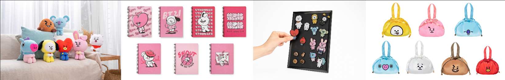 BT21 佳節福袋則有8吋坐姿絨毛玩偶、束口化妝包、線圈筆記本與可愛磁鐵,限量50組必須直接放入購物籃!