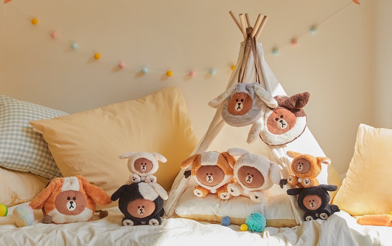 全新 PUPPY BROWN 系列絕對萌翻粉絲的少女心,熊大化身最忠心的朋友狗狗討拍拍,粉絲們絕對要每隻都領養回家!除了必須抱好抱滿的絨毛玩偶外,也有絨毛鑰匙圈、全新大臉束口袋等粉絲收藏。
