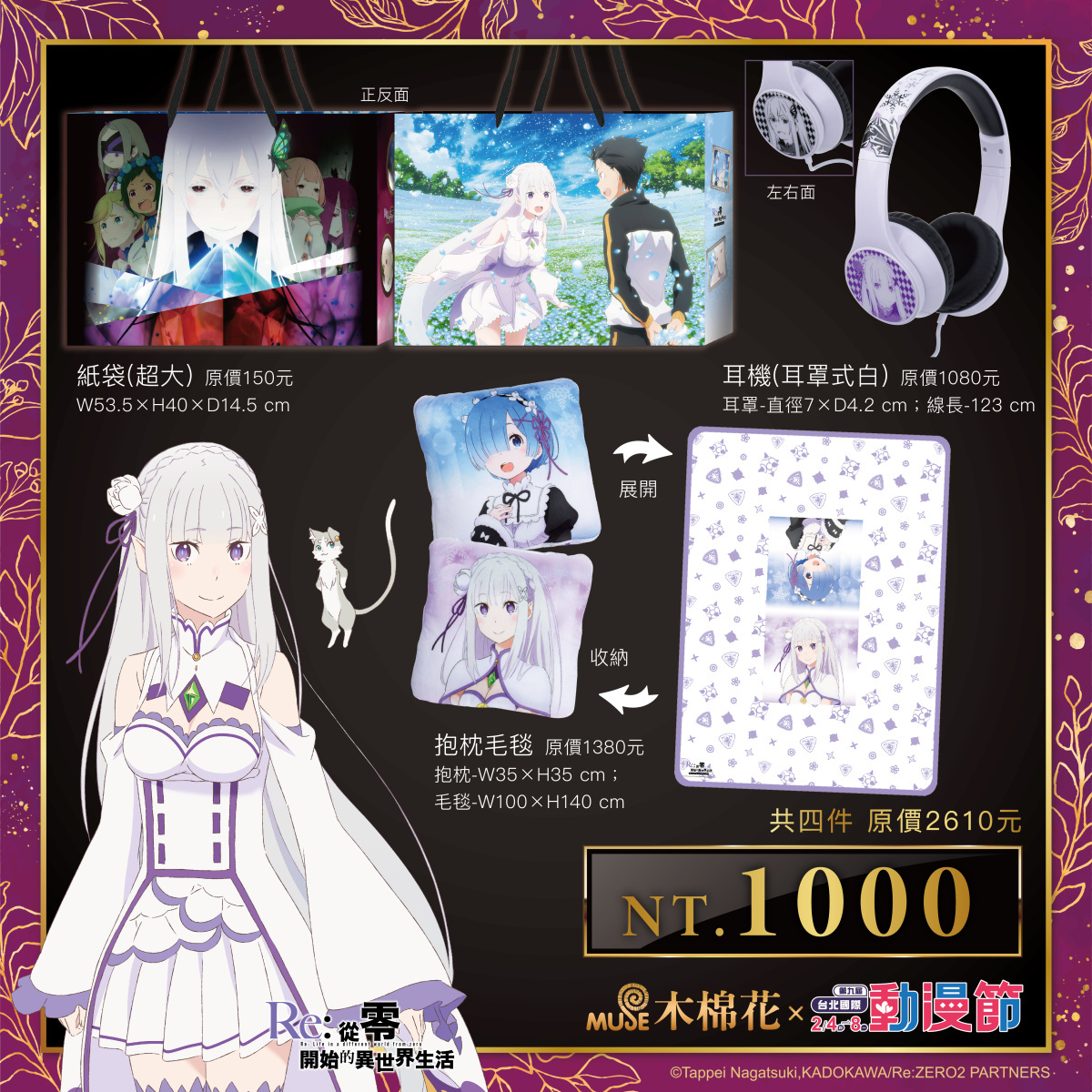 關於我轉生變成史萊姆這檔事》也帶來許多新品,「史萊姆」這次轉生成了暖手枕,可愛的害羞臉造型溫暖你的手與心,其中最注目的實用旅行背包,內裏設計防水層,貼心為你外出旅行預備乾爽的行程。《Re:從零開始的異世界生活》在1月份也即將播出後續劇情,「雷姆」以及「愛蜜莉雅」是否讓你難以選擇?這次「抱枕毛毯」讓你同時擁有兩位女神,甚至可以轉換毛毯以及抱枕兩種用法,新角色魔女也首度推出有線耳機,從零粉別錯過!《