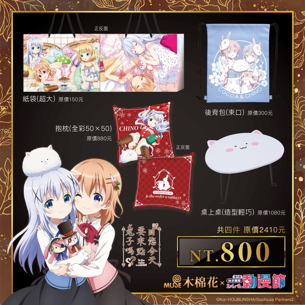 請問您今天要來點兔子嗎??》本次推出吉祥物「提比」桌上桌,還有人氣少女「智乃」的雙面彩色抱枕,這樣的組合內容是不是超划算實用,讓你今晚想來兔子呢?