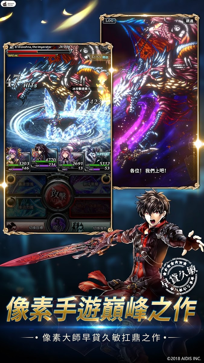 玩家將可在遊戲中將可體驗由像素大師早貸久敏精心製作的內容,欣賞生動 2D 角色馳騁於 3D 廣闊戰場。玩家可選擇手動、自動隨時切換,施放多樣化的必殺技能,並且加入原創聖物技能系統,讓玩家自由組合打造不同戰術。此外,超過三百萬字的文字劇情搭配動人的 BGM 為玩家營造出沉浸式的冒險,並收錄眾多小遊戲及豐富支線隱藏要素,等待玩家解鎖。