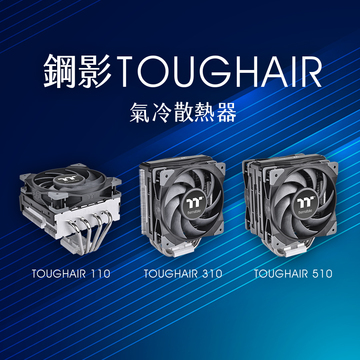 鋼影 TOUGHAIR 系列氣冷散熱器擁有三種規格: TOUGHAIR 110 採下吹式,適用於小型裝機系統;TOUGHAIR 310 跟 TOUGHAIR 510 皆為單塔散熱體設計,分別搭載單顆跟雙顆的風扇,再搭配特殊造型散熱鰭片,形成大風量加強整體散熱效能。此外,TOUGHAIR 系列氣冷散熱器也與最新的 Intel 與 AMD 處理器相容。