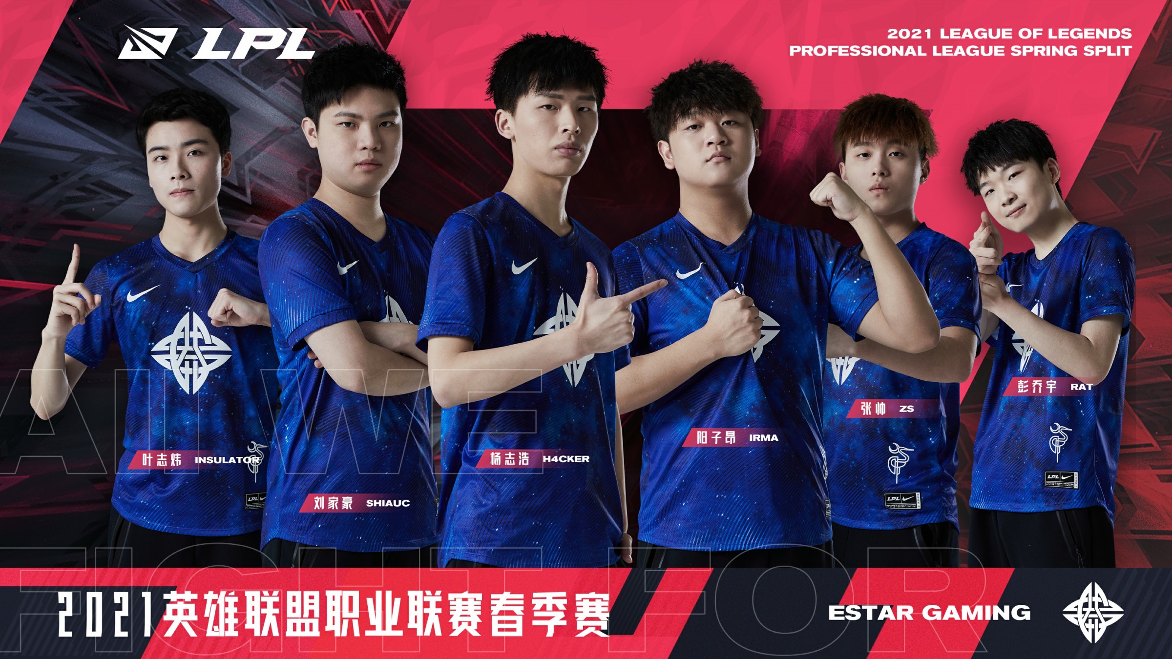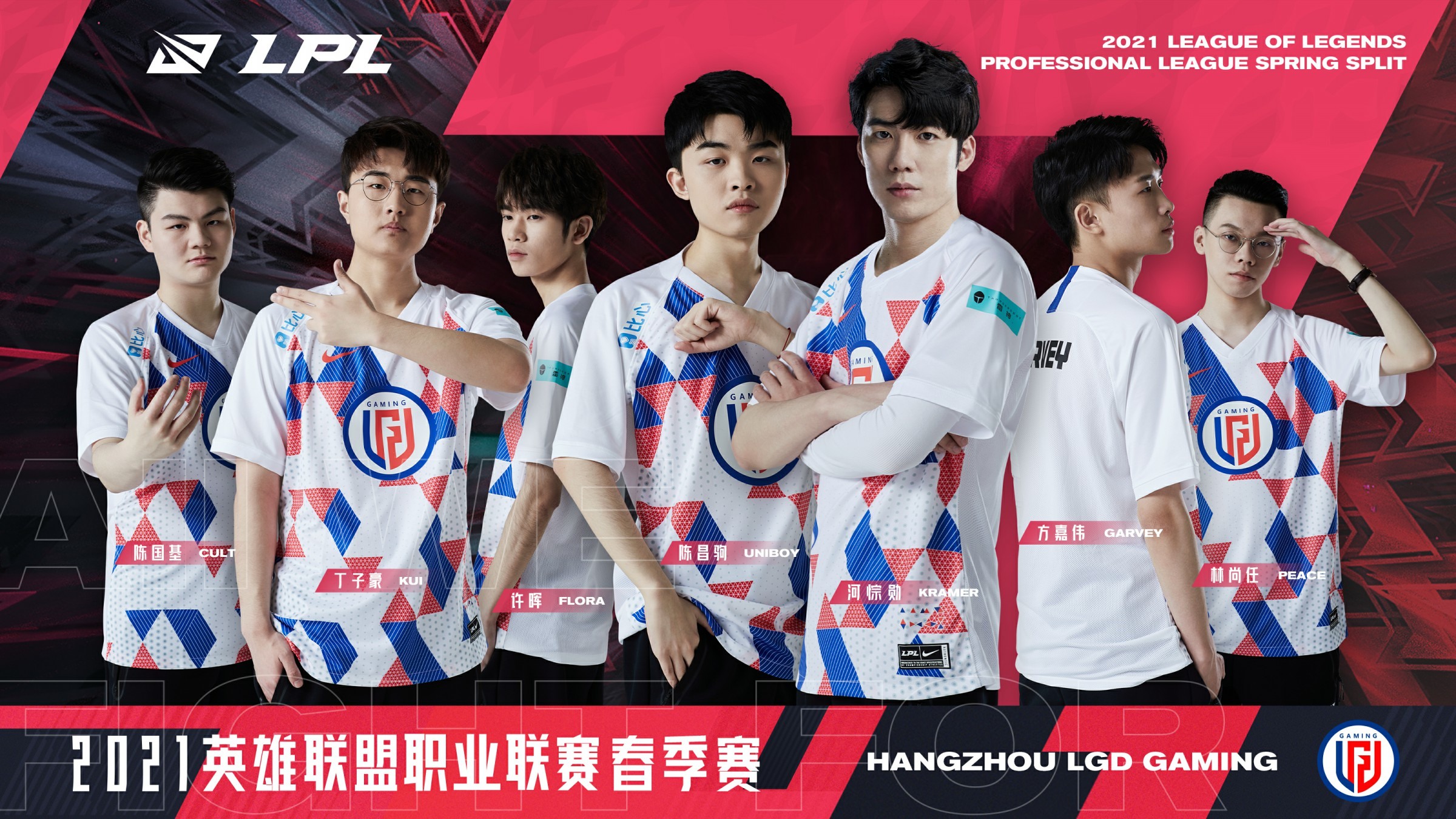LPL 官方今日公開了 LPL 春季賽各大戰隊的宣傳海報,其中 RW 戰隊的戰服上還可以看到 ahq 的字樣,以下為官方公開的戰隊照: