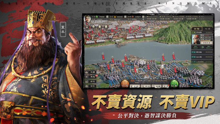 遊戲中只有真實力,杜絕 VIP,給玩家真正的公平對決,不賣資源不賣兵,運籌帷幄才能決定勝負。