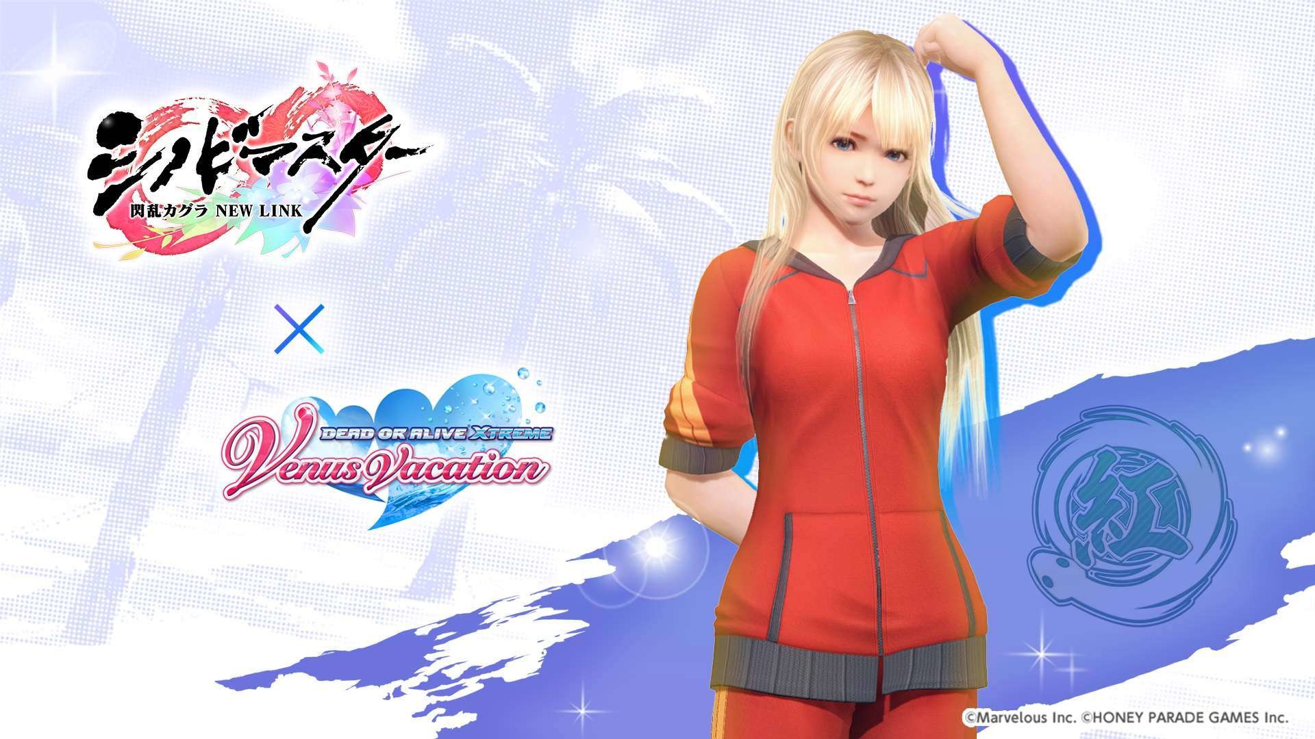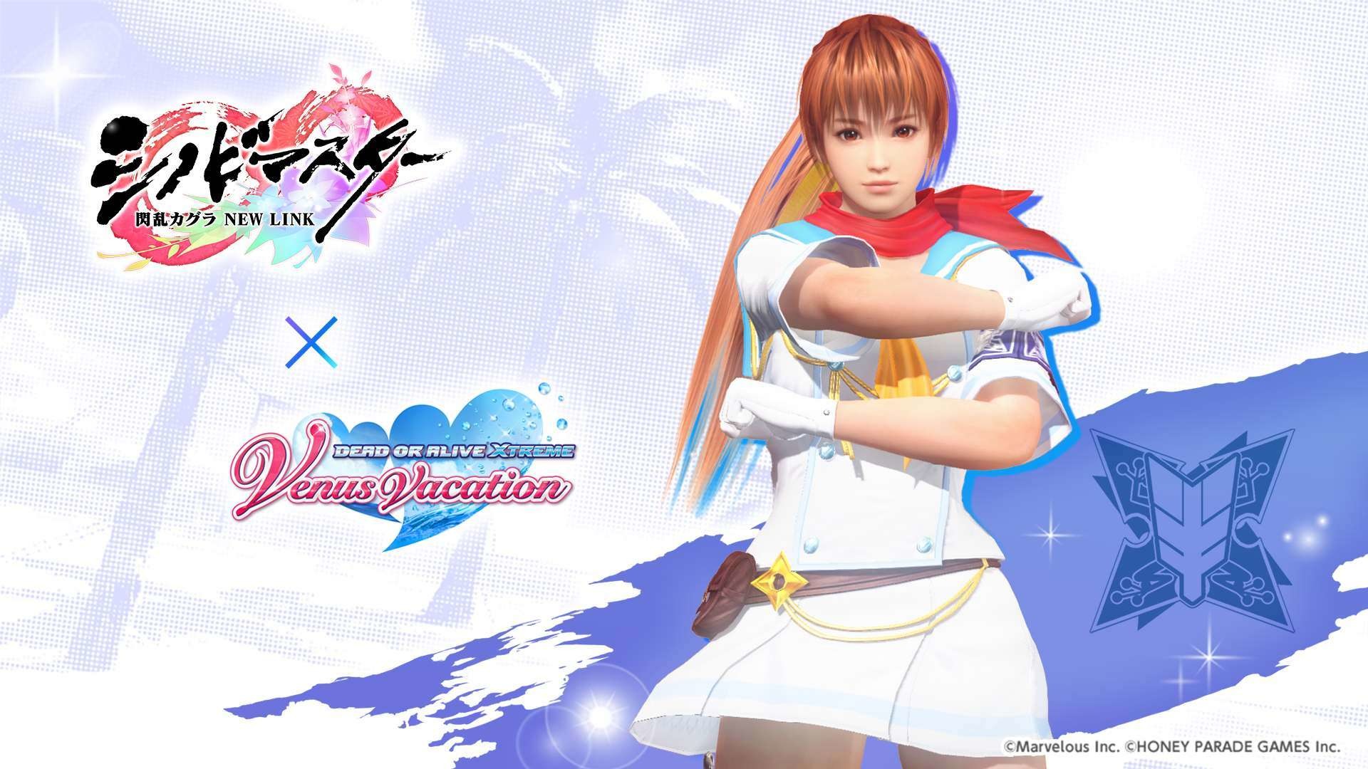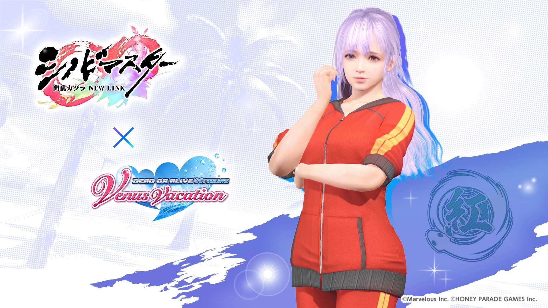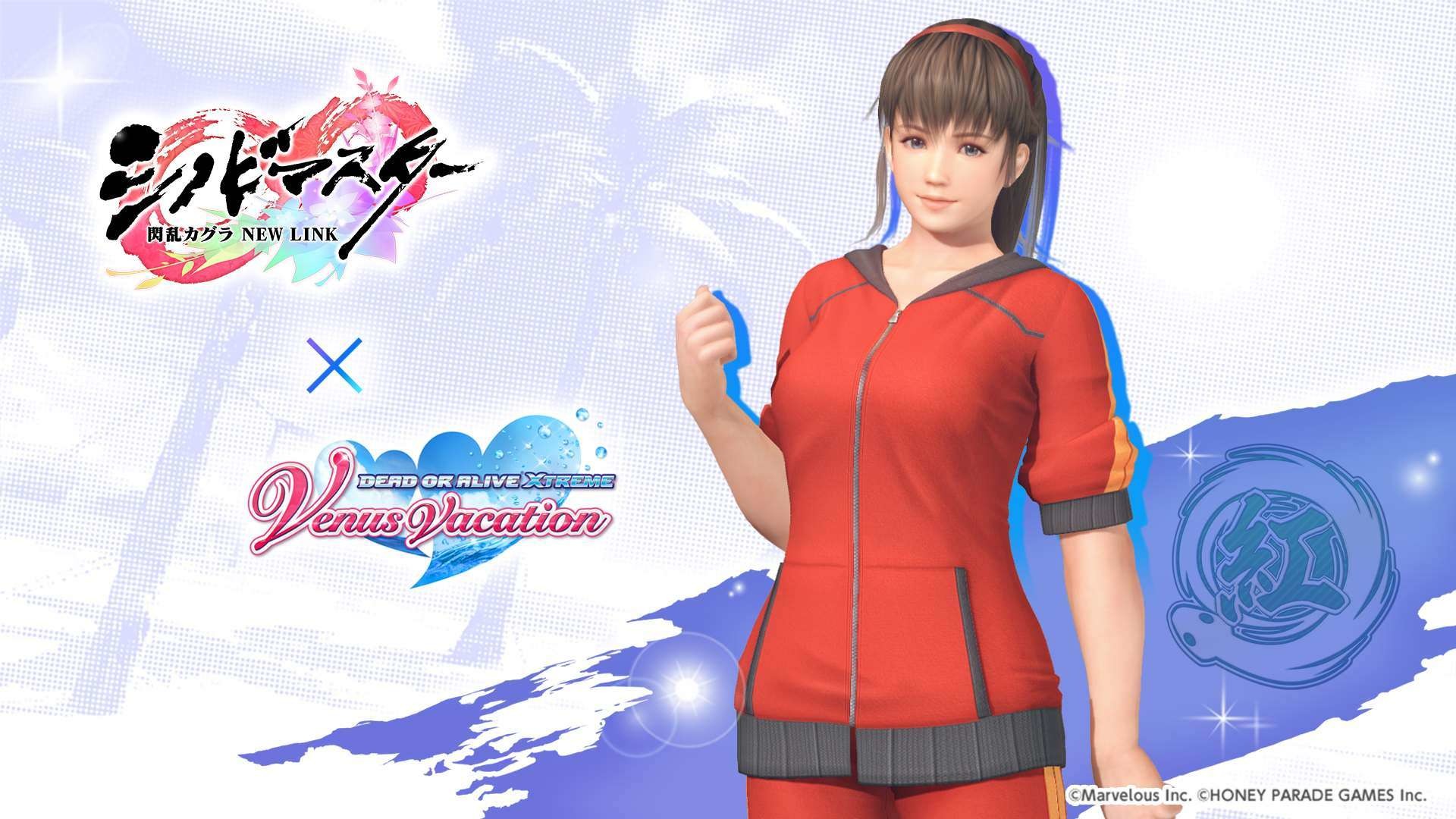 忍者大師 閃亂神樂 NEW LINK》聯動紀念活動之一,期間限定的風潮穿搭抽卡將於本日開始,本抽卡中 SSR 泳裝出現機率為平常的三倍,玩家有機會獲得「半藏忍裝束」「巫神樂忍裝束」等聯動泳裝。其他還有每日 1 次免費維納斯抽卡 10 連,以及「島主應援證試用版」,試用版可 7 天免費體驗每日競賽消費 FP 減半、報酬 2 倍掉落等特典。