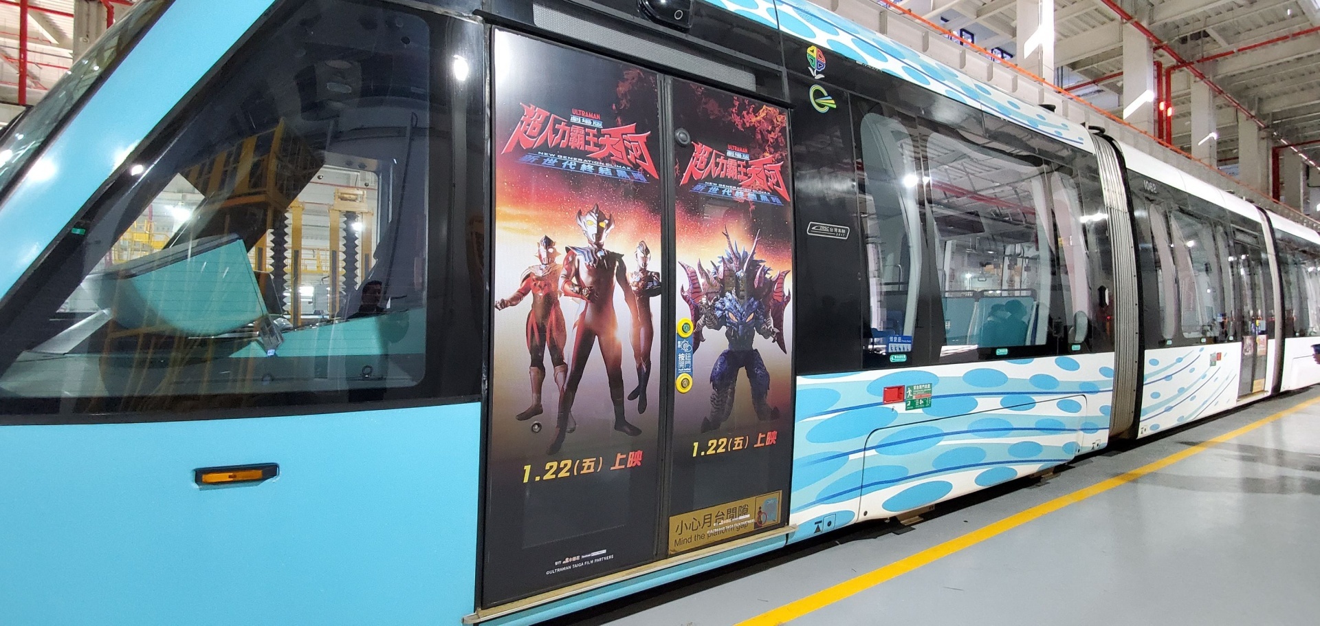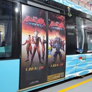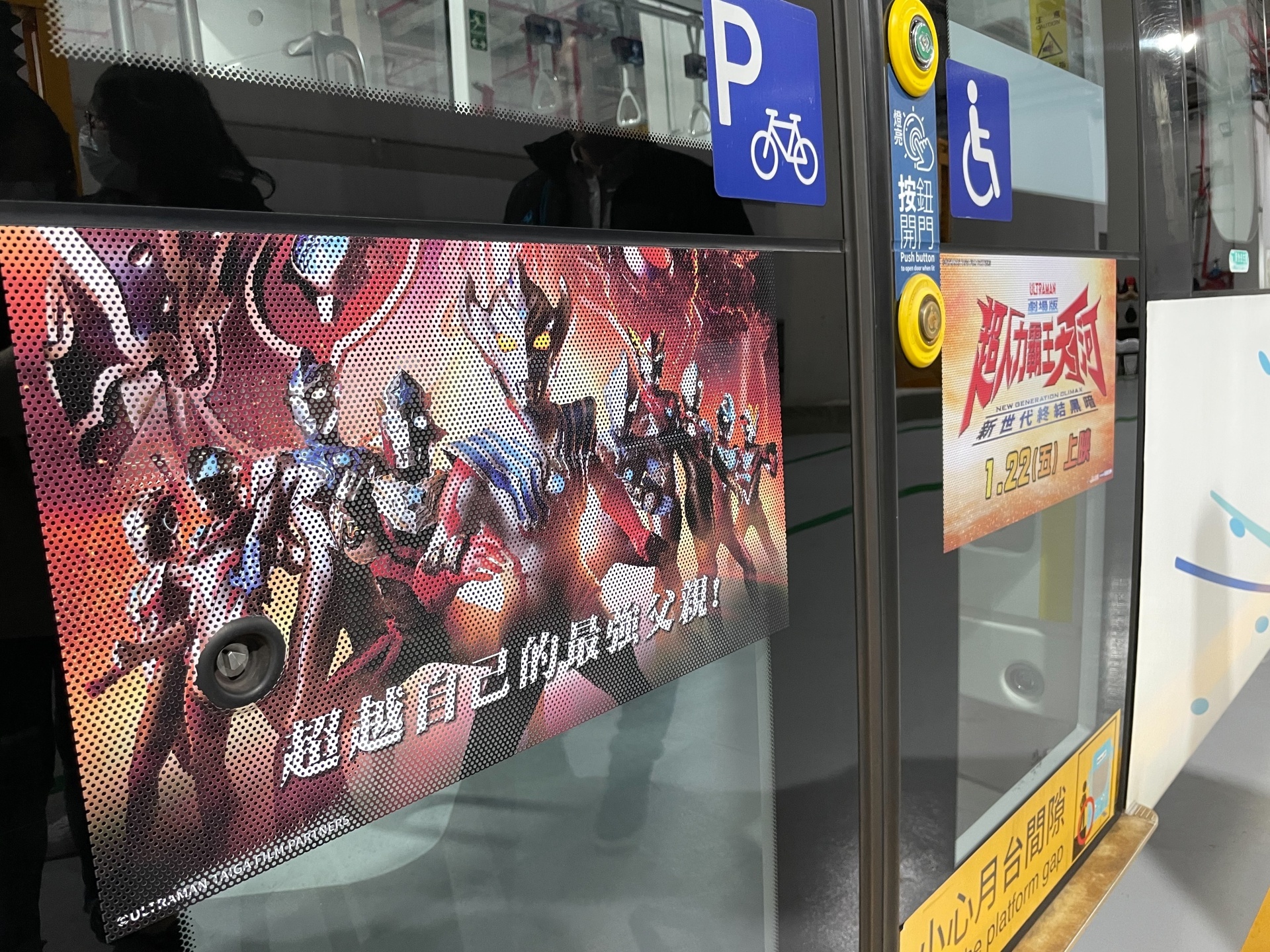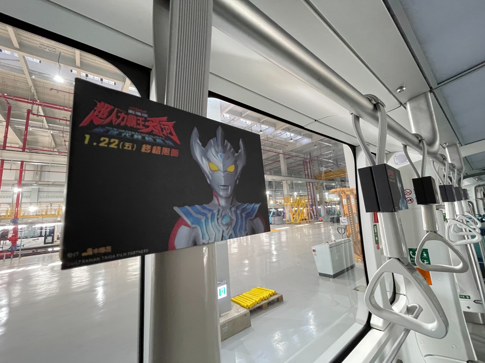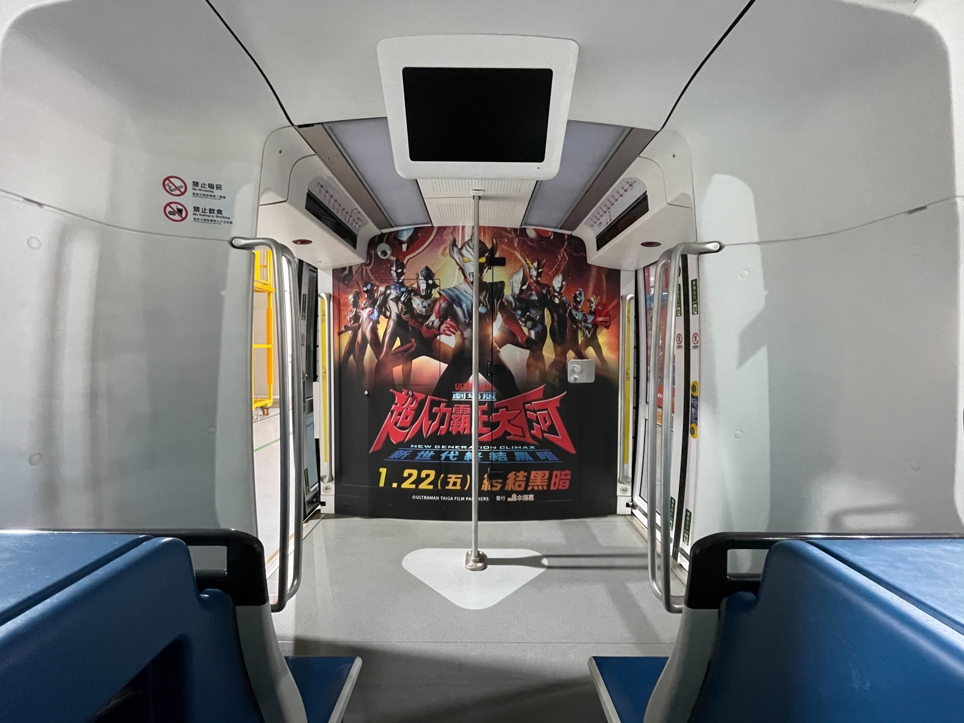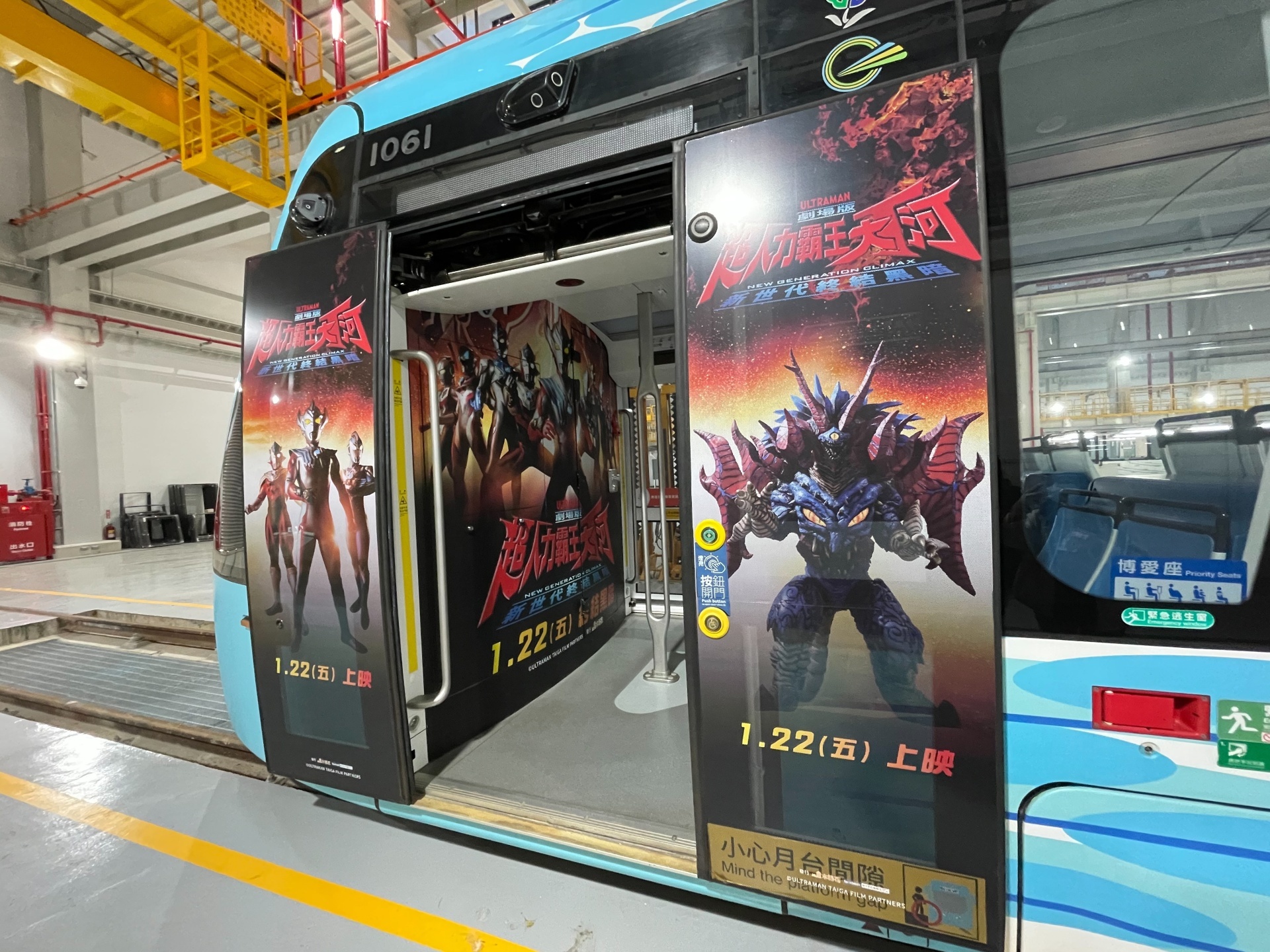 《劇場版 超人力霸王大河-新世代終結黑暗》與淡海輕軌合作推出「超人力霸王主題列車」,即日起至2月15日,為期一個月。車廂門貼上可以看見超人力霸王大河、風馬、泰坦斯三位帥氣的身影,以及正義的一方在電影中奮力抵抗的反派怪獸葛利姆德,不禁聯想超人力霸王為了守護地球的和平而持續奮戰的精彩畫面!搭上輕軌列車,車廂頭尾有《劇場版 超人力霸王大河-新世代終結黑暗》的大片佈置牆面、拉環上有大河、風馬、泰坦斯三位英雄的英姿,歡迎所有大小粉絲親臨列車拍照互動,線上參加淡海輕軌官方粉專的活動還有機會獲得超人力霸王週邊好禮!