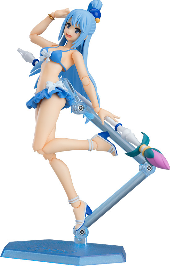 出自電影《為美好的世界獻上祝福!紅傳說》,「阿克婭」以泳裝姿態登場。表情零件有「笑臉」、「快要哭的臉」與「喊叫臉」。配件有「魔杖」、令人感到夏天的「水槍」與「水特效零件」。另附有以海為主題的透明藍專用台座。使用容易擺出姿勢且不易滑動的 figma 獨創關節零件,可重現劇中動作場景。重點部分使用軟材質,確保平衡與可動性。商品包含能支援各種場景的附可動支架 figma 專用台座。會場價:1860 元 ※全球首賣商品。