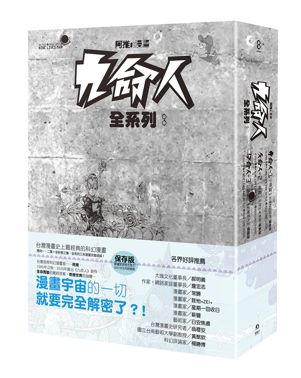 漫畫家阿推《九命人》出版至今三十年,仍是臺灣最經典的科幻漫畫之一,更影響無數創作者,包括歌手五月天阿信、漫畫家常勝、服裝設計師詹朴等。在 2021 年的蓋亞沙龍裡,阿推也將與知名服裝設計師詹朴展開跨界對談,分別從《九命人》漫畫裡的宇宙觀,以及詹朴的線上服裝秀〈凝視鏡中之花〉裡的世界觀分別談起。