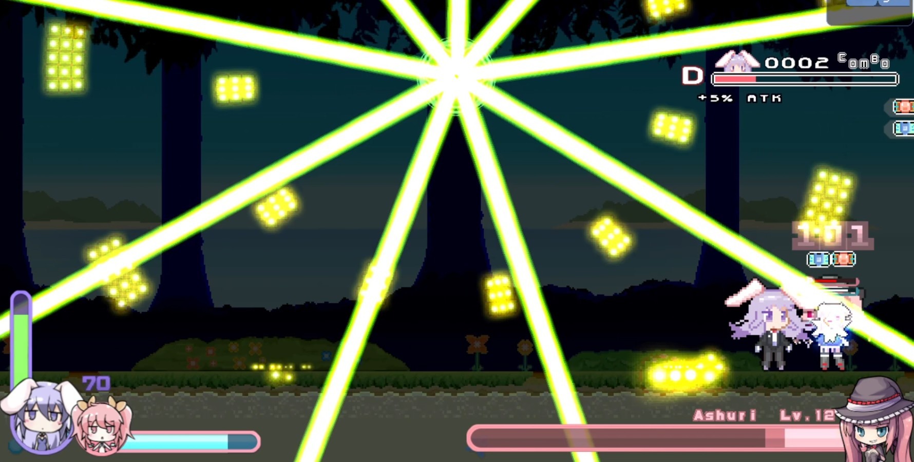 開發團隊指出,遊戲中的背景音樂為輕快活潑的電音曲調,大部分出自「3R2」、「Triodust」這兩位作曲家之手,而從發售至今,《