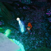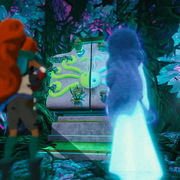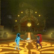 另外,在劇情表現上團隊也有與劇場演員及導演合作,藉由動態補捉以及導演的敘述方式來演繹出遊戲內的故事劇情,因為在遊戲中角色是沒有配音的,所以在肢體的表現上需要更為細緻的表演來演出姊妹倆在遺跡探險過程中的心境轉變。而像是本次展出的版本中呈現的舞蹈部分就與編舞老師以及舞員合作並以動態捕捉來表現出舞蹈的體態美感,歌曲人聲的部分也與專業的歌手進行合作錄製。