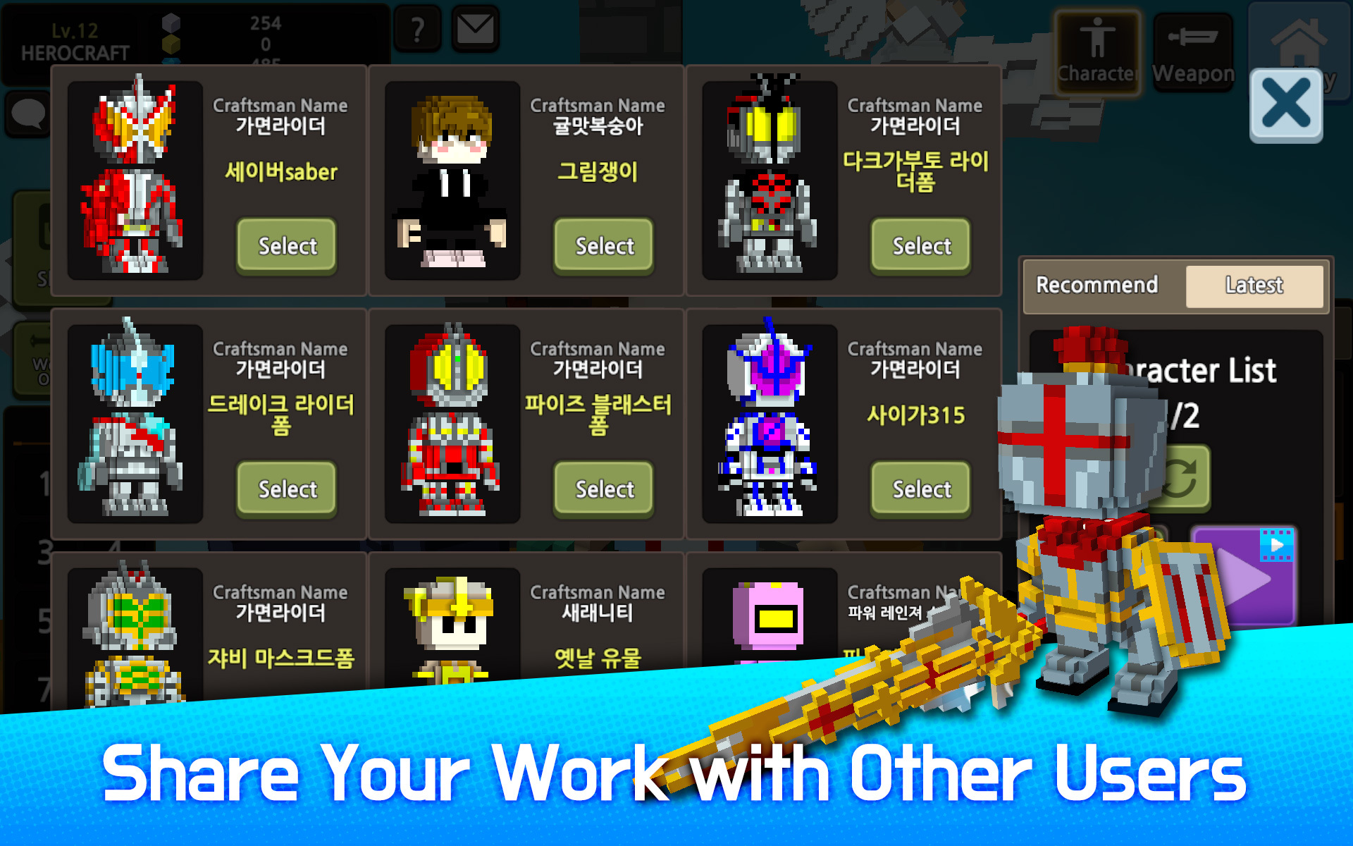 英雄爭霸(Hero Craft)》是一款結合武器、角色造型與戰鬥爭霸的 RPG 遊戲,玩家將可使用 3D 像素方塊創作的專屬人物和武器,不論是騎士、戰士、法師、武士、忍者、機器人,甚至是身邊的朋友,都可以按照想像的模樣去創造人物。