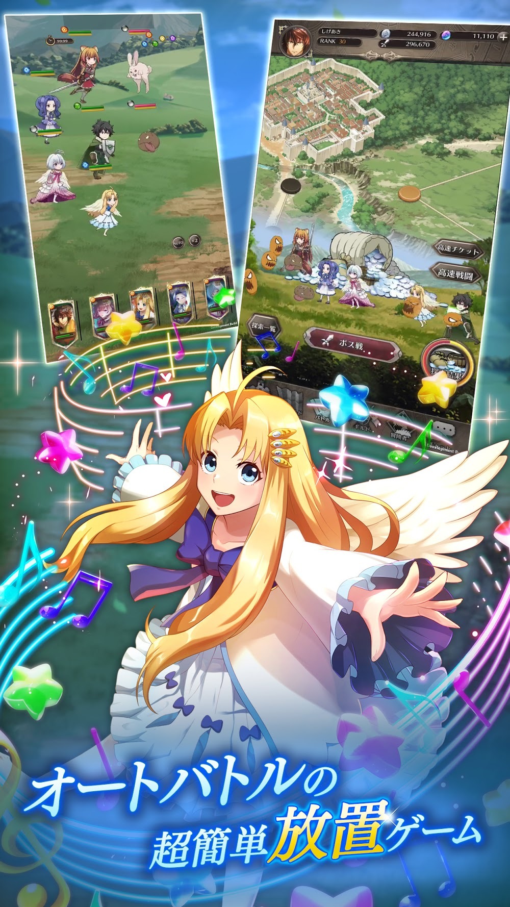 盾之勇者成名錄》的手機 RPG,遊戲中同時收錄原作動畫及原創劇情,玩家能隨意編組喜歡的角色在同一隊伍,透過戰鬥累積經驗提升等級,或是為角色換上新的裝備,打造自己想像的最強隊伍進行各種挑戰。