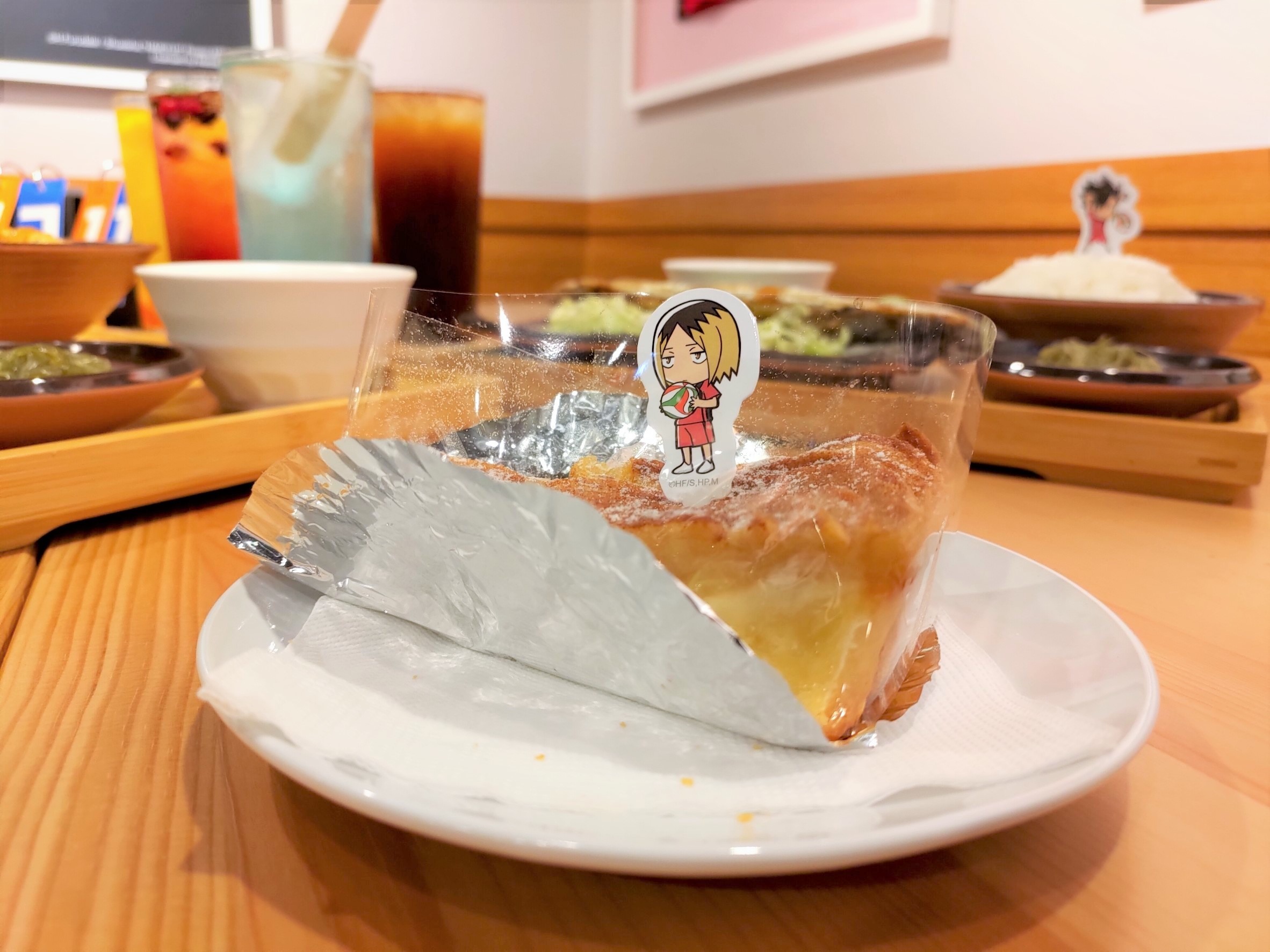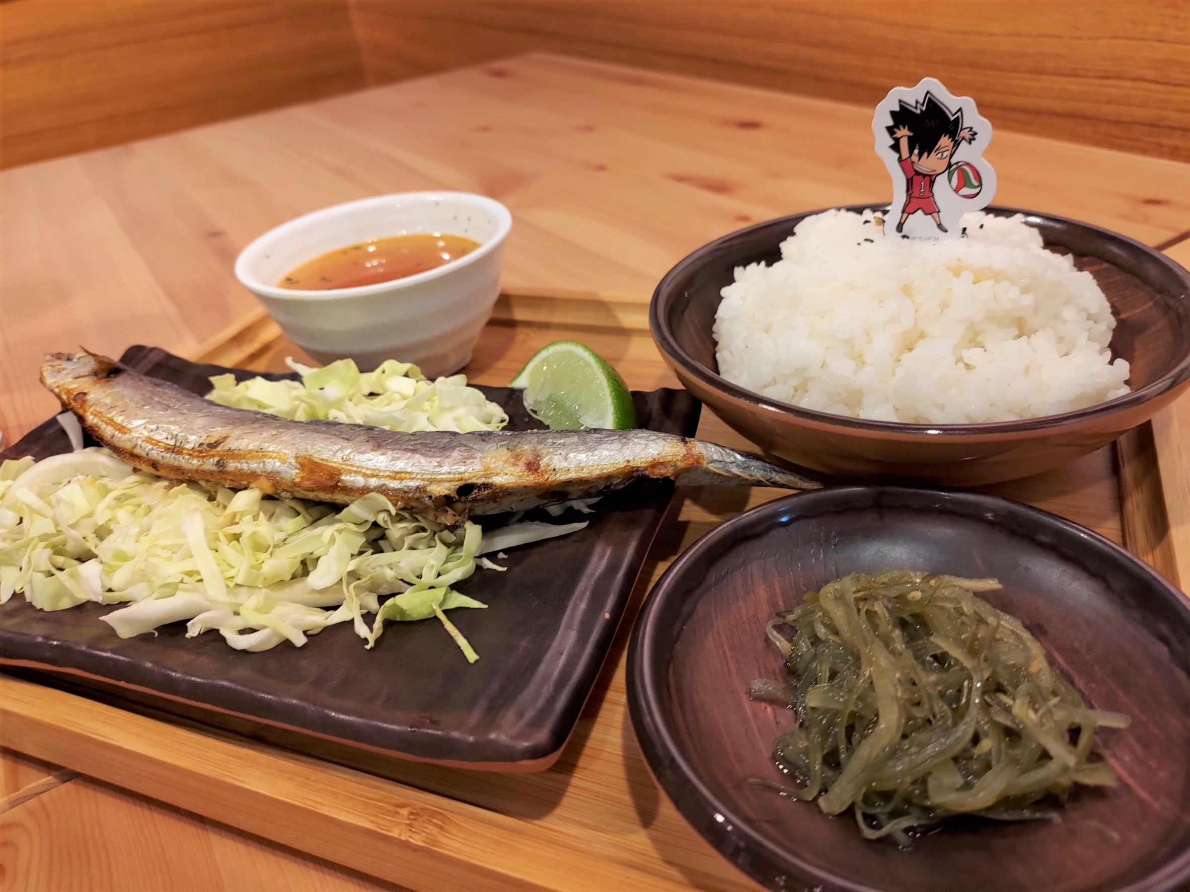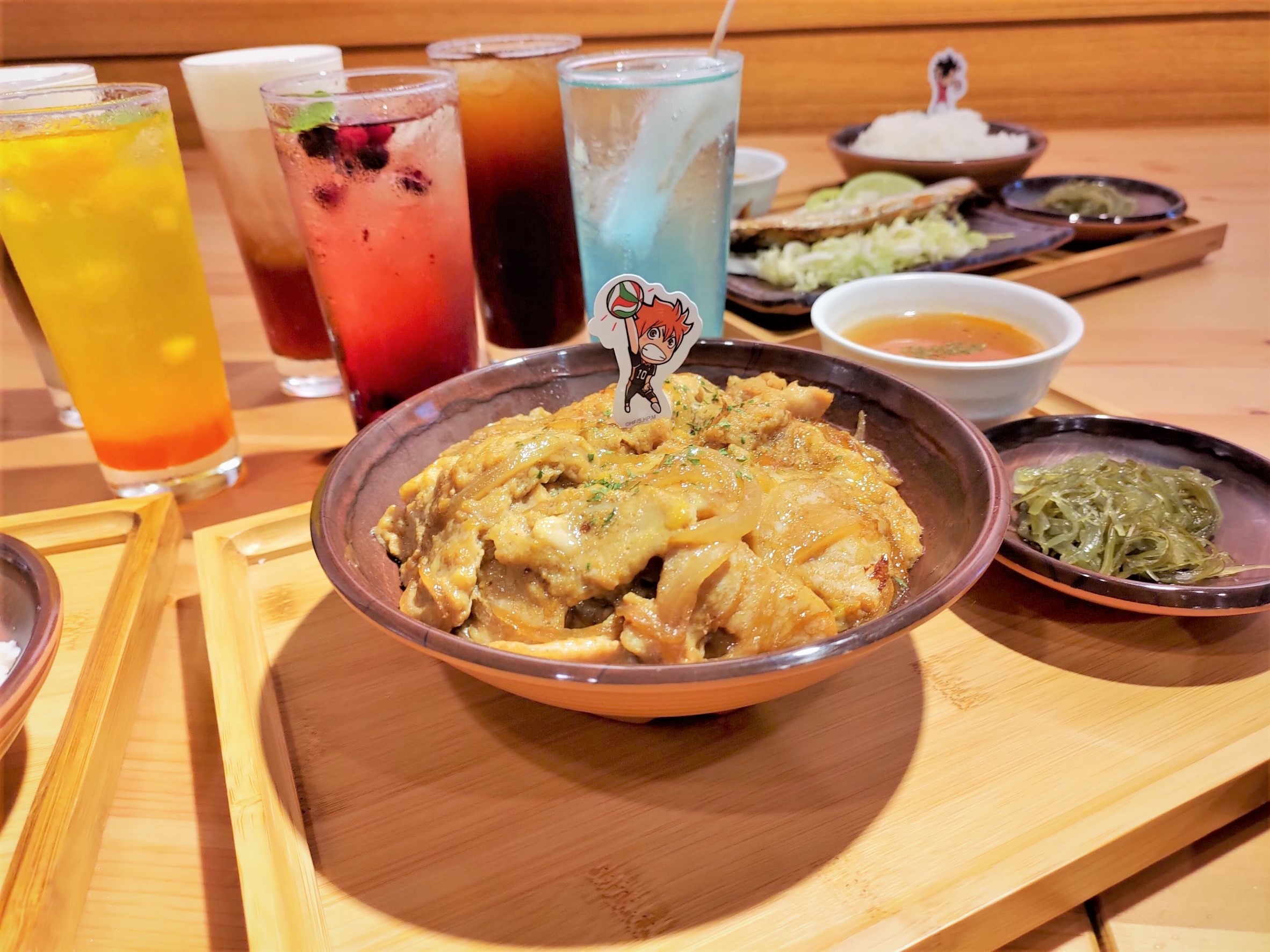 本次共有四道主餐、四種副餐、甜點,與六種主題飲品,並還原了作品中各個角色們最愛吃的食物。像是影山飛雄最愛的溫泉蛋豬肉咖哩飯、黑尾鐵朗愛吃的鹽烤秋刀魚定食、菅原孝支喜歡的麻婆豆腐,以及月島螢的草莓蛋糕……等,每一道餐點都會有象徵著角色們的插卡,飲品則是可收藏的可愛吸管套,只要任點乙杯飲品,將會隨機發贈乙款角色典藏杯墊,共有 12 款。