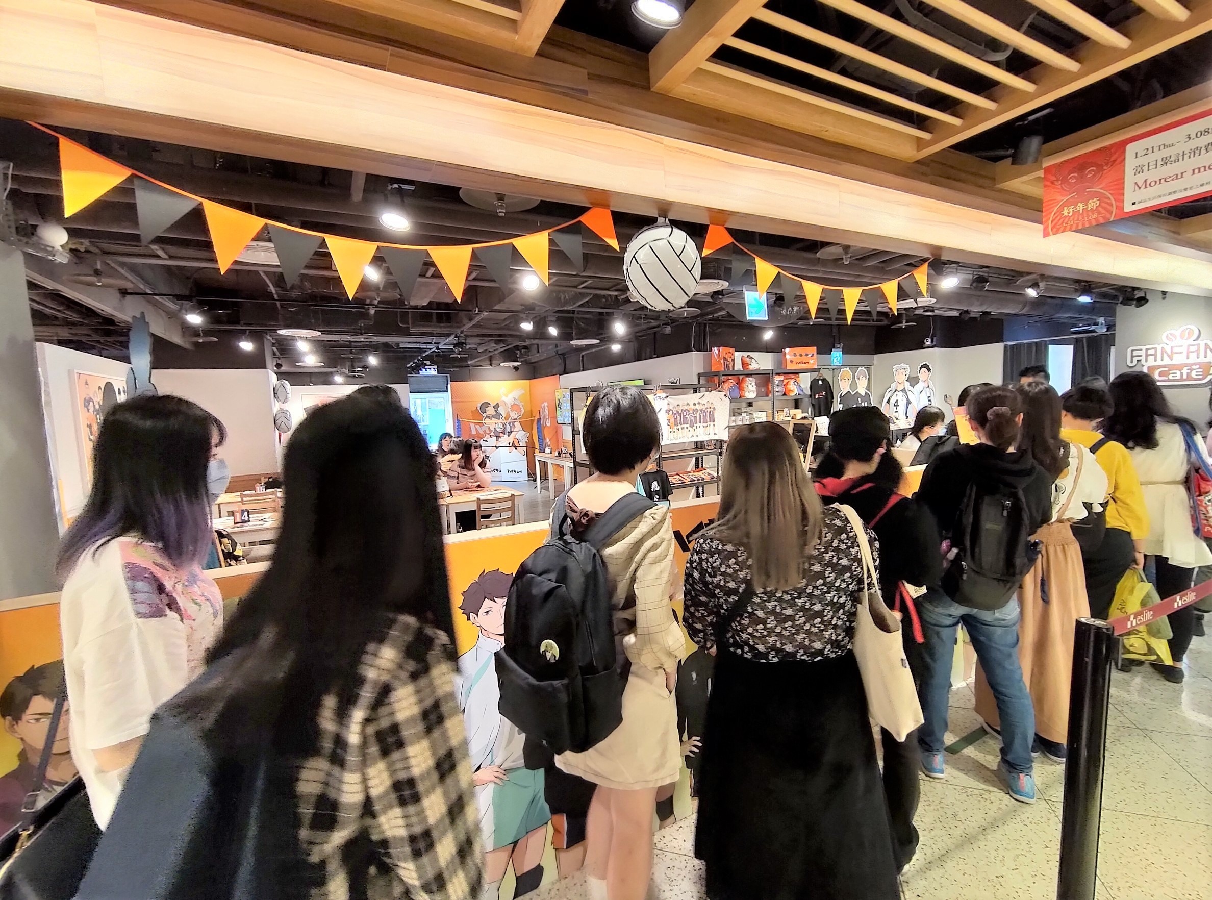 排球少年!!》的主題快閃餐廳於今年 2 月 25 日起至 3 月 25 日止推出,本次 FANFANS CAFÉ 以全國大賽舞台的第四季做為主題空間設計,準備了許多主題聯名餐點、沉浸式的主題空間,與各式各樣的限定主題周邊。同時,本次活動限定的周邊商品,共推出了限定限量的 T-SHIRT、帽子、抱枕、壓克力小夜燈,與角色立牌等眾多文具用品、生活小物,與服飾周邊。
