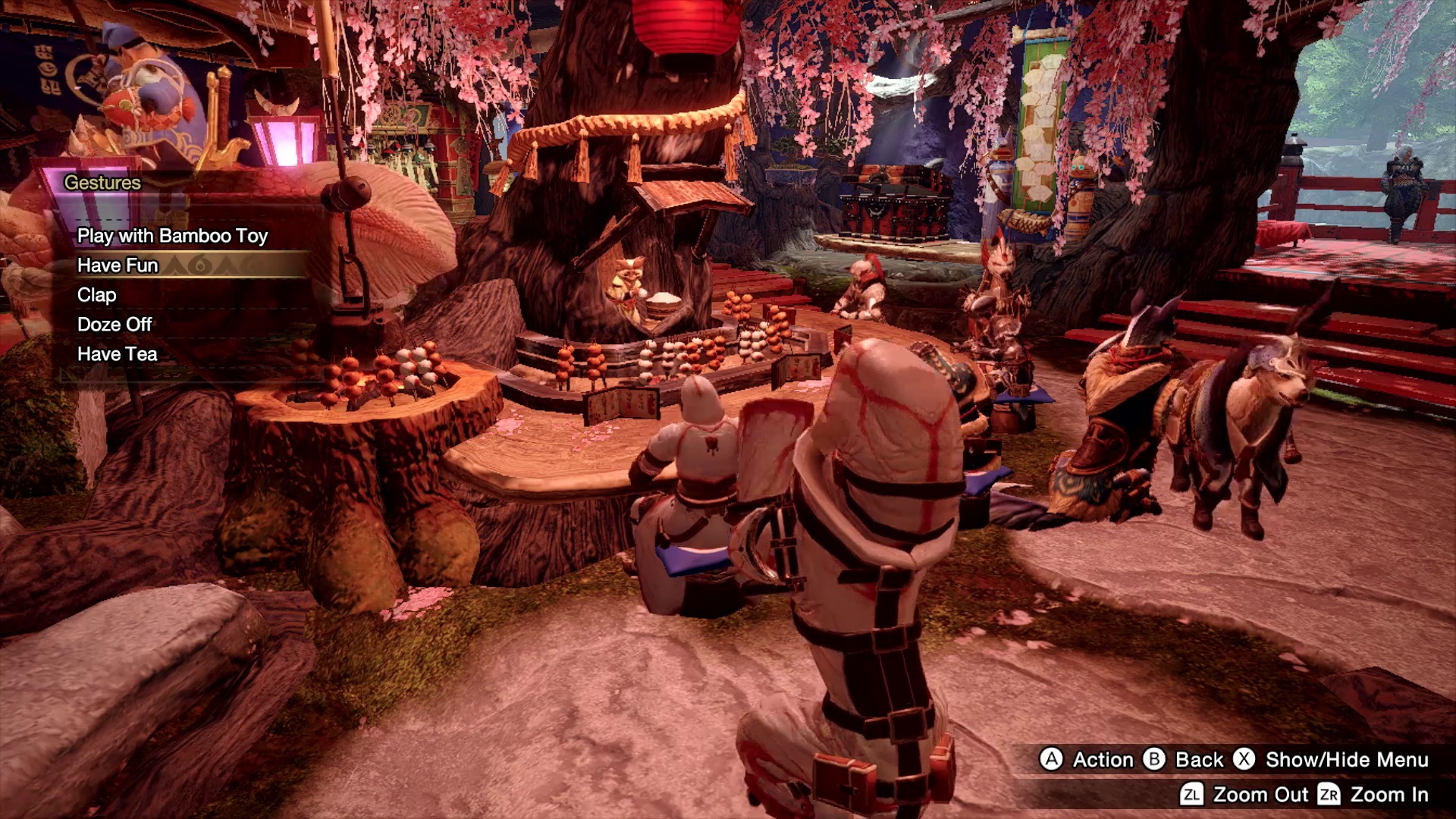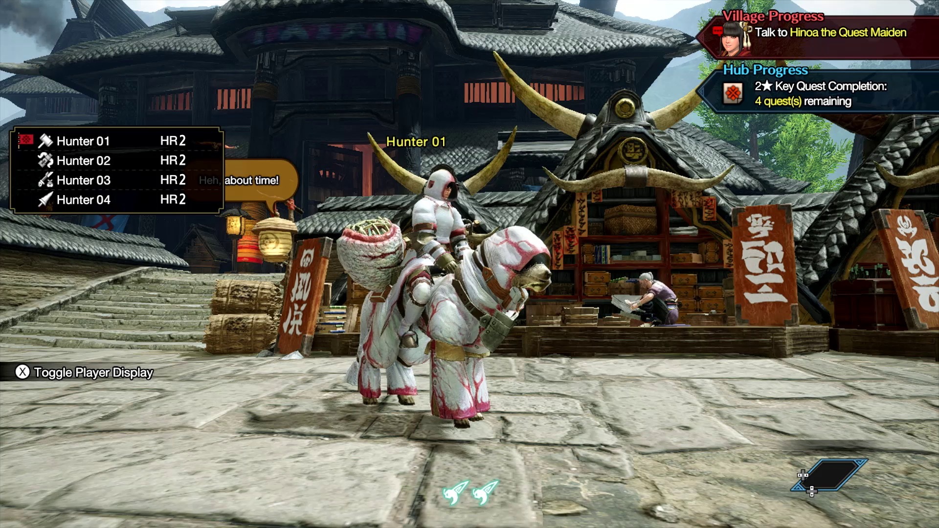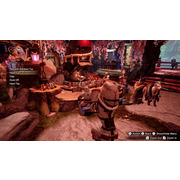 魔物獵人 崛起》獨有的特色,所以在和負責人討論之後,其實這次絕大部份的樂曲都有加入歌唱部份,更正確來說應該是講人聲(Vocal)吧。可以說在大部份曲目中,人聲也是樂曲本身的一部份,比如說在與魔物對峙時會播放的戰鬥樂曲裡,也加入了像是背景和聲之類的元素。在村子裡使用的樂曲,也因為想要表現出神火村的文化,所以集會所和廣場用的樂曲有接待員的歌聲,在可以用餐的料理設施也有名為艾草(ヨモギ)的角色獻唱,算是想表現出每個人在村裡分擔的職務這種氣氛,所以才會這樣編曲。關於能不能去除人聲部份,基本上還是以目前使用的樂曲為主,但是在這方面我們還有一些系統沒有正式公開,可能就要等到之後有機會再和大家說明。
