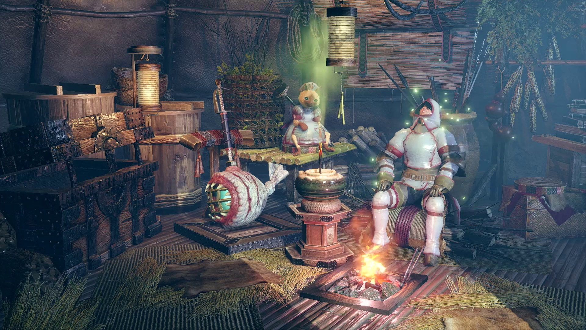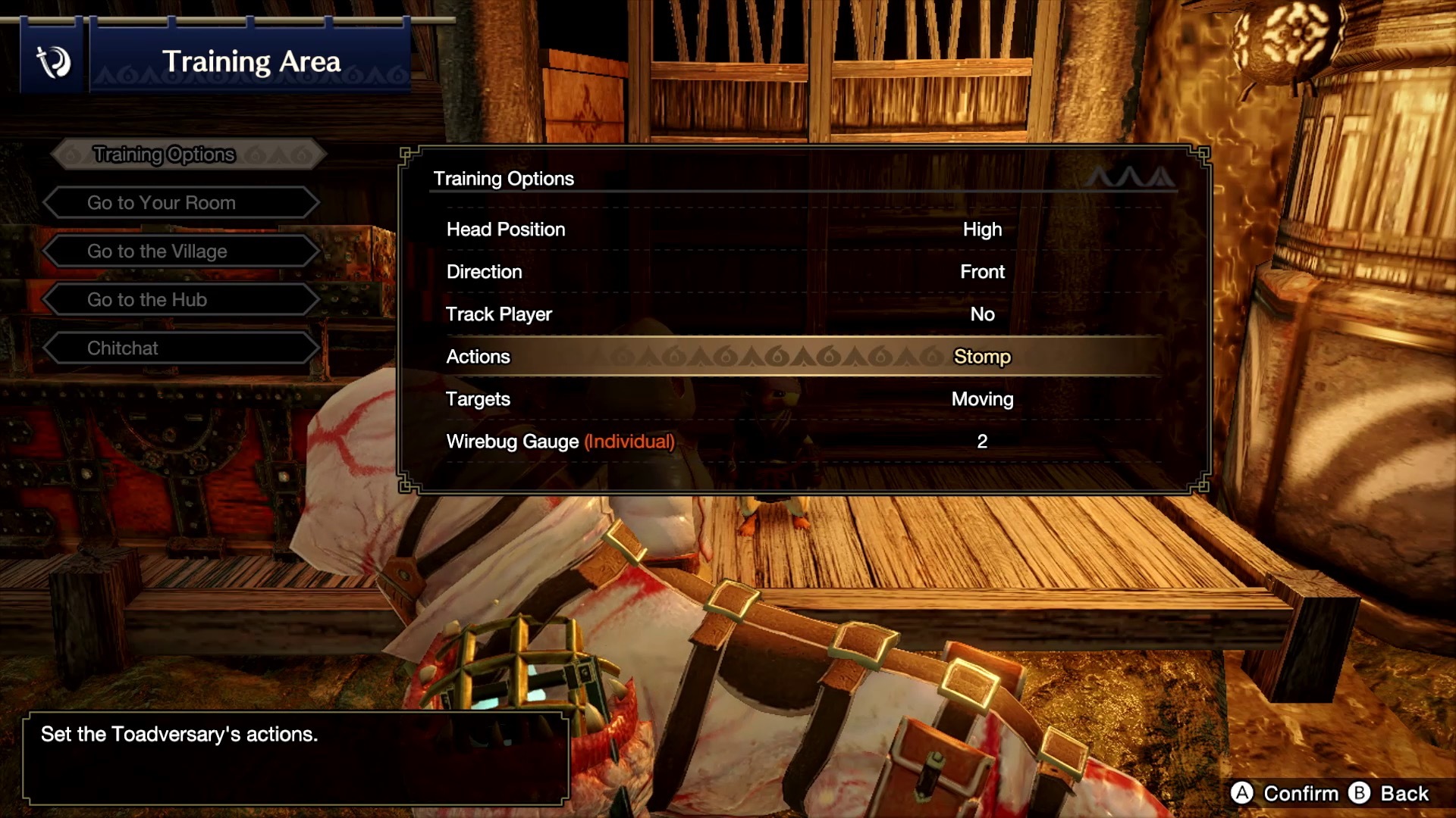 一瀬:在等同遊戲練習模式的修練場裡,只有一台以這次登場的新魔物「河童蛙(ヨツミワドウ)」為模型造出的修練機器「機關蛙」,玩家可以利用這個修練機器練習武器動作,或是設定它發動攻擊,並不會另外出現造型像雄火龍(リオレウス)的修練機器。