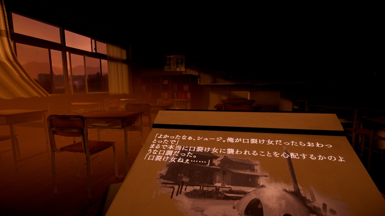 夕鬼 零 Yuoni: 崛起》當中,玩家可以在充滿紅色日落光芒的教室裡透過讀一本書來欣賞故事。周圍沒有人,唯一的聲音是傍晚的蟬鳴。玩家需要做的就是持續閱讀桌上的寫生簿,並逐步了解畫在其上的那些兒童們的怪異故事。當素描本接近尾聲時,玩家之所以站在日落的教室中的原因也將揭曉。