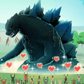 另外,讓哥吉拉贏下比賽可以減少空氣汙染,也能增加村落中蘋果的產量,玩家能將蘋果贈與即將離開的村民,增加他留在村莊的意願。