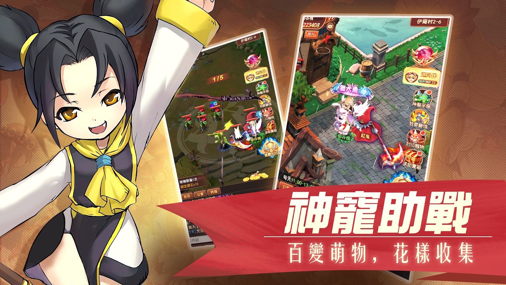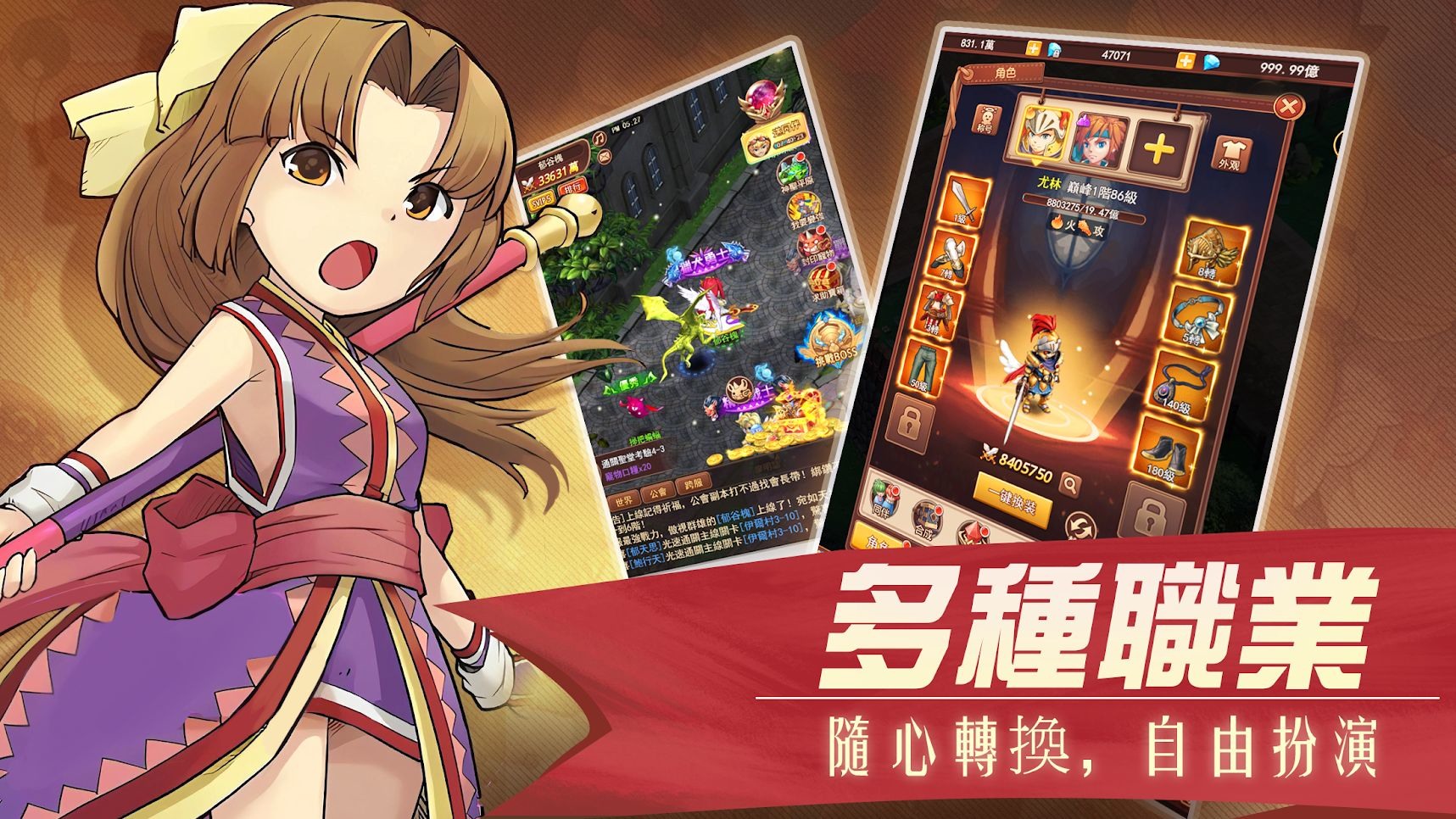 職業方面,除了可攻可守的劍士、群攻爆炸的法師、戰力爆棚的斧戰士之外,更有樵夫、礦工、煉金術士等副業可選擇。而在可捕捉的寵物中,包含長驅直入的攻擊型、牢不可破的護衛型、支配元素的魔法型等百種寵物,玩家能透過豐富的養成系統自由搭配、改造升級,打造獨一無二的寵物兵團。