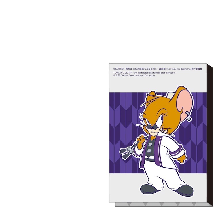 本次推出的合作商品包是以穿著緋村劍心服裝的湯姆貓、還有穿著雪代緣服裝的傑利鼠為主題,推出包括玩偶、吊飾、毛巾、資料夾等多款商品。屆時可於日本全國有上映《