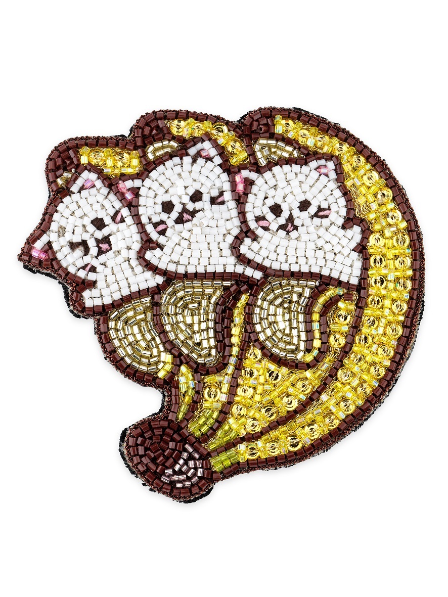 而在珠寶方面,有一款針織胸針配有彩色水晶和三隻小貓組成的束