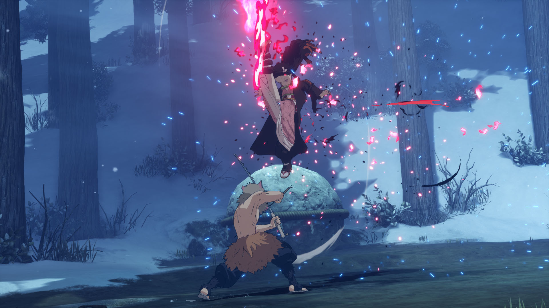 在培育者鱗瀧左近次的鍛鍊下,學會水之呼吸的竈門炭治郎能夠使用各種招式,被鬼襲擊變成鬼的竈門禰豆子也可以透過鬼之力在 VS 模式中靈活應戰!
