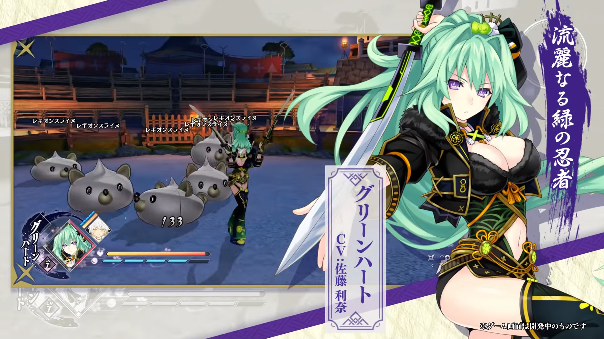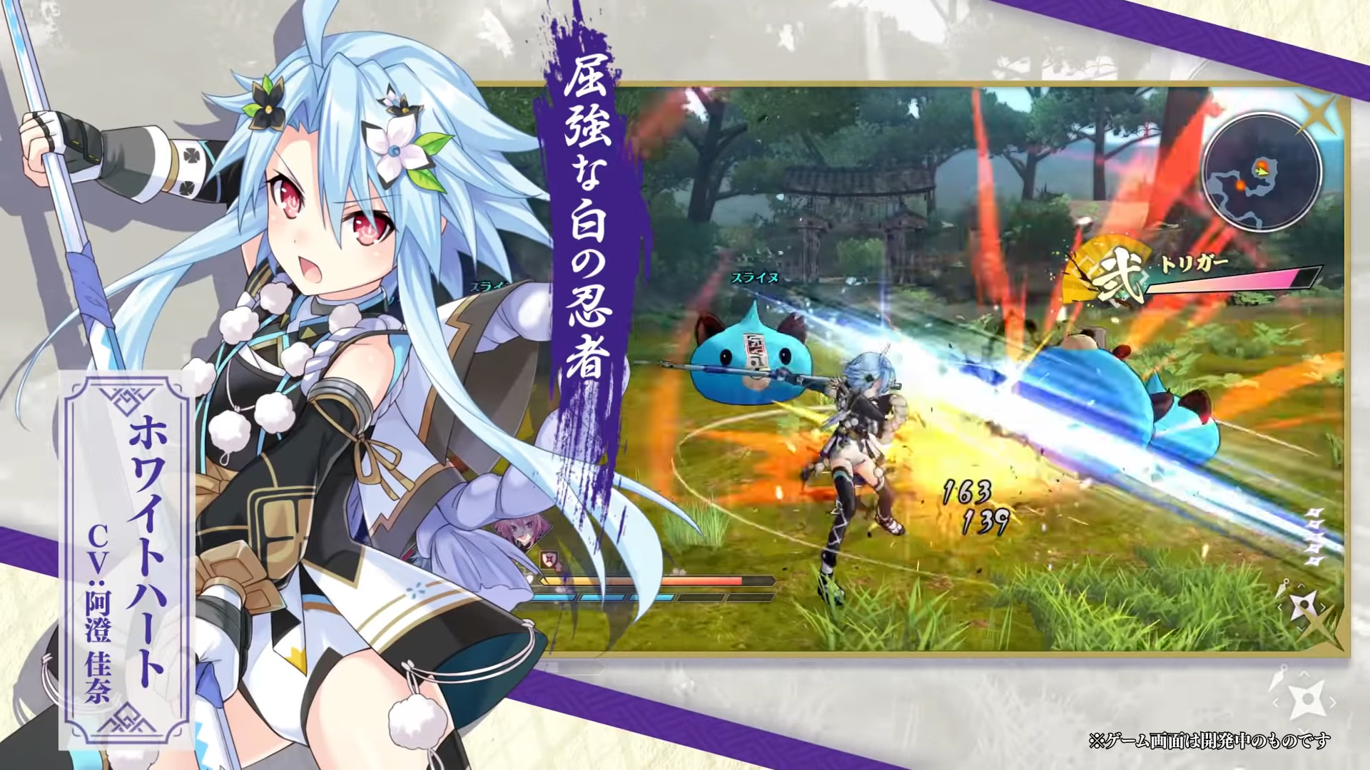 ”。遊戲中會有來自《戰機少女》系列的紫心、綠心、黑心、白心等四女神化身魂波流忍者,與來自《