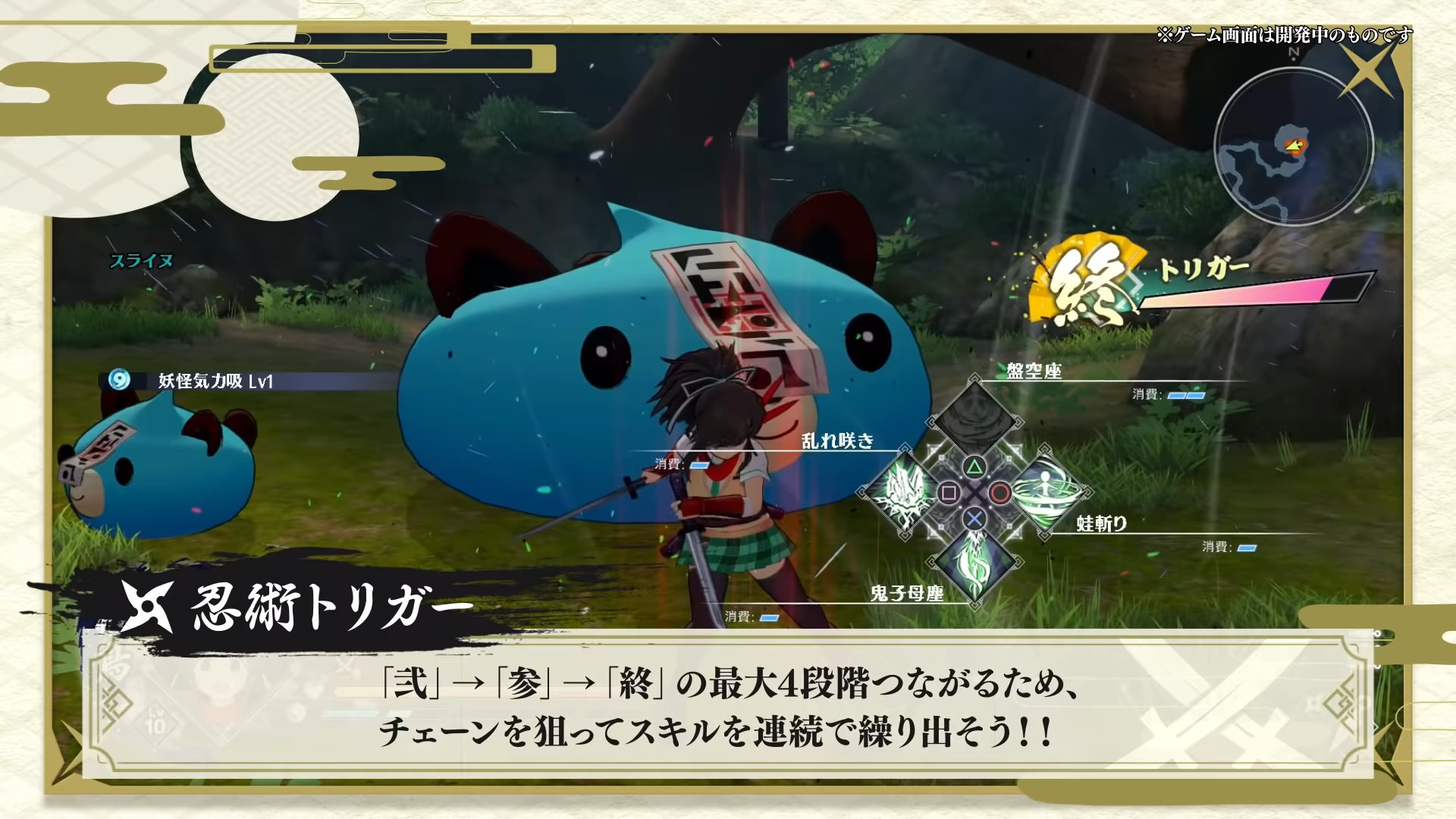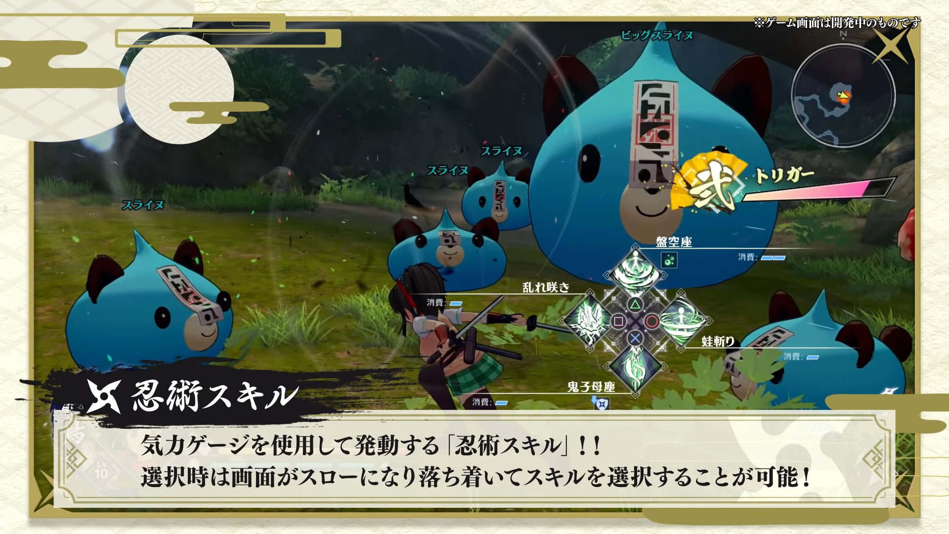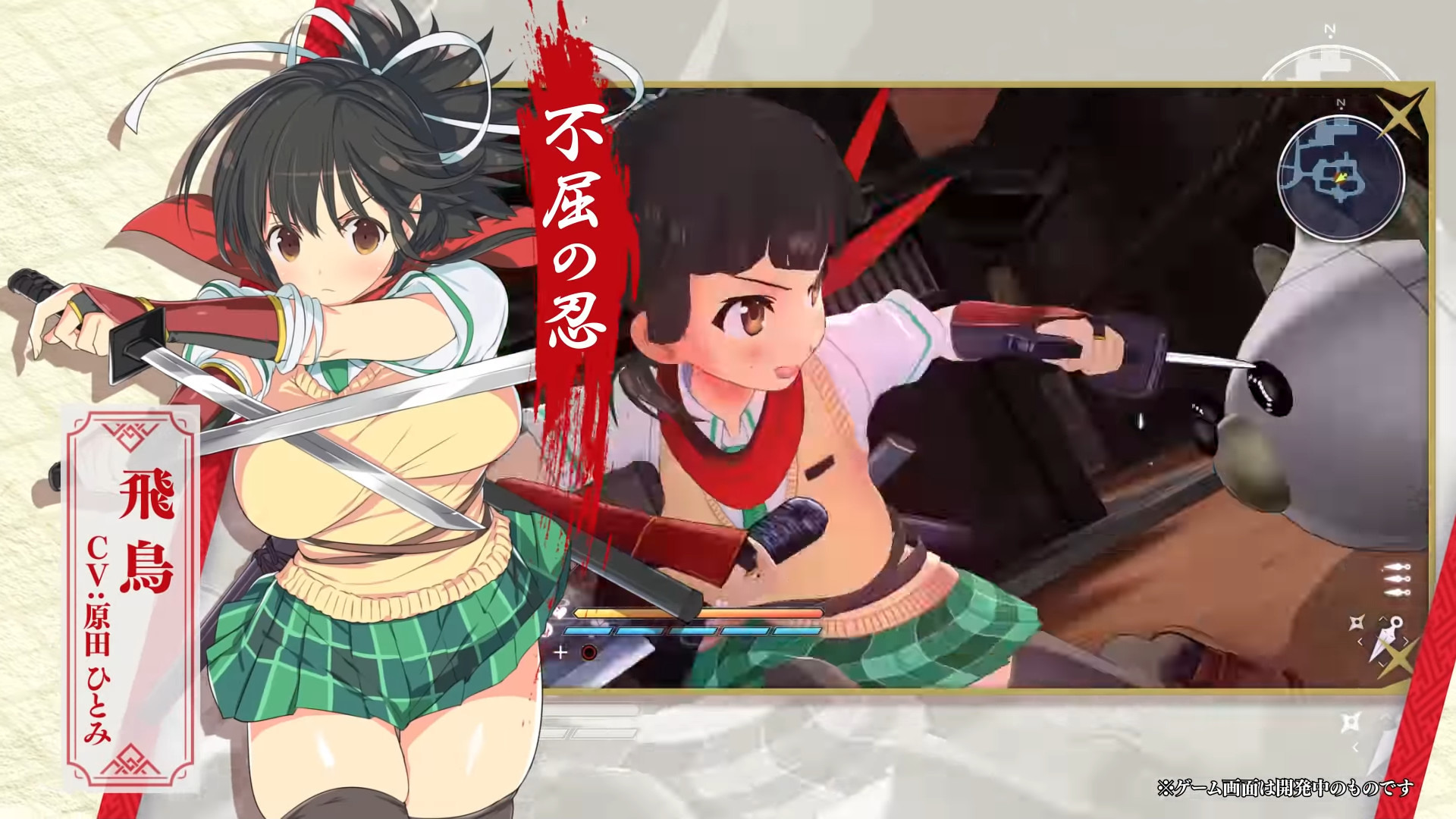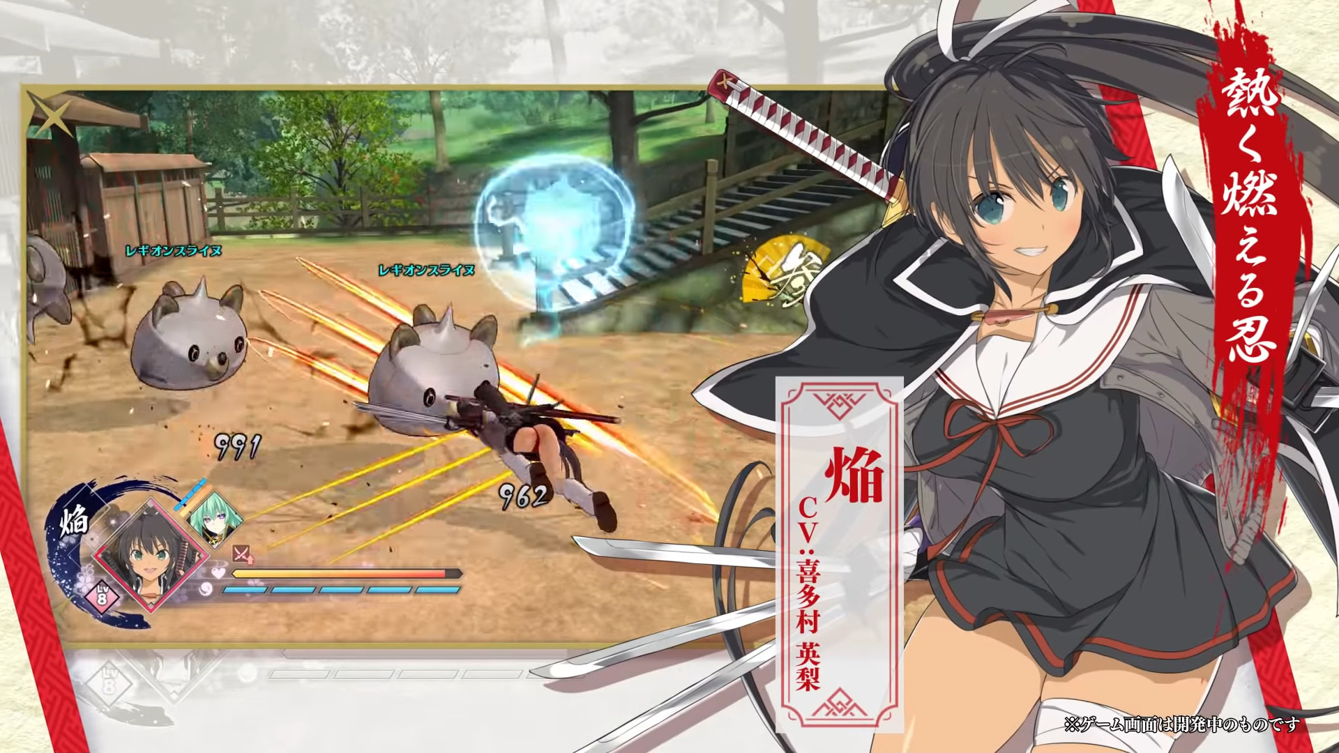 閃亂神樂》系列的刃仁破流忍者等登場角色的介紹、配音陣容與實際遊玩動作展示,以及戰鬥系統的介紹。包括使用氣力量表來施展的「忍術 Skill」,讓忍術 Skill 威力四段強化的「忍術 Trigger」,能發動風、林、火、山四種不同效果戰型的覺醒模式「風林火山 Drive」,EX 量表集滿時可以發動的超強力必殺技「忍 Extreme」等。