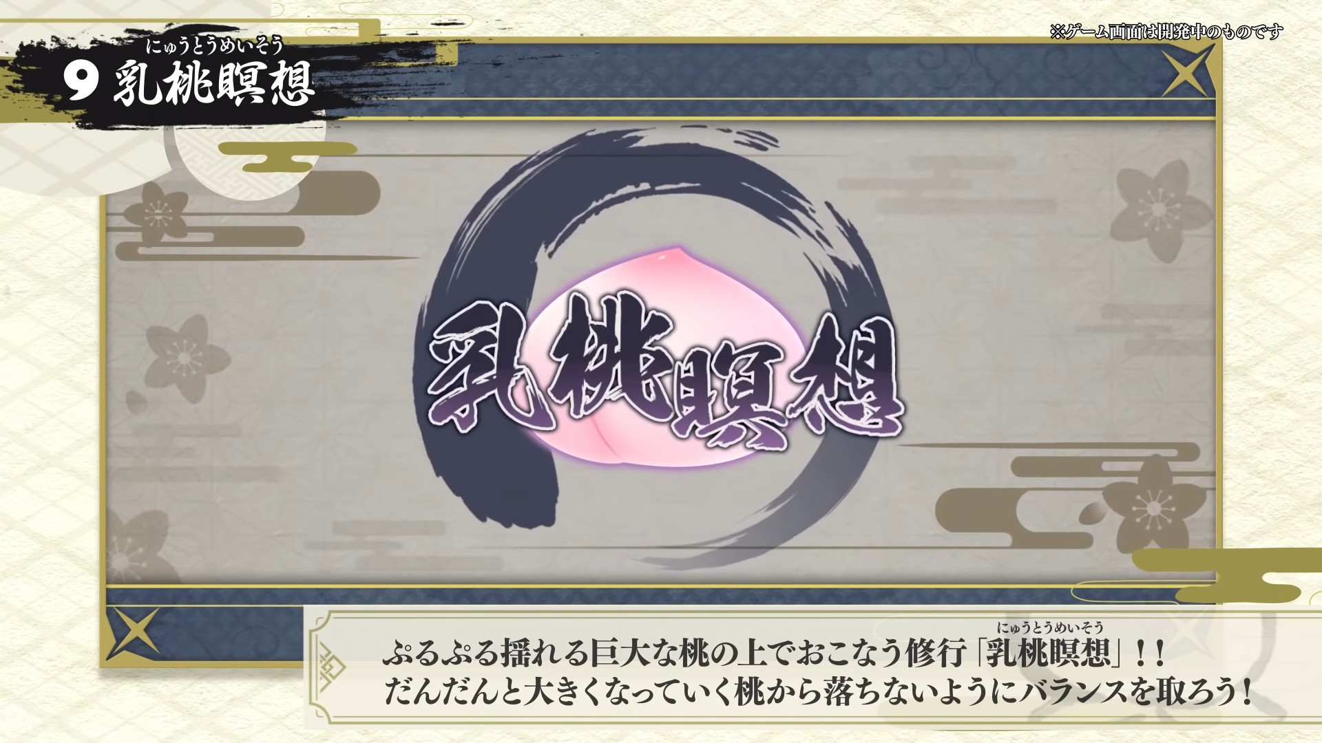 遊戲還收錄賺取經驗值提升等級、自訂技能與強化能力參數的 RPG 要素,還有在巨大的桃子上維持平衡以獲得暫時能力強化的「乳桃瞑想」小遊戲,官方還特別製作了一首「乳桃瞑想音頭」的卡拉 OK 影片。
