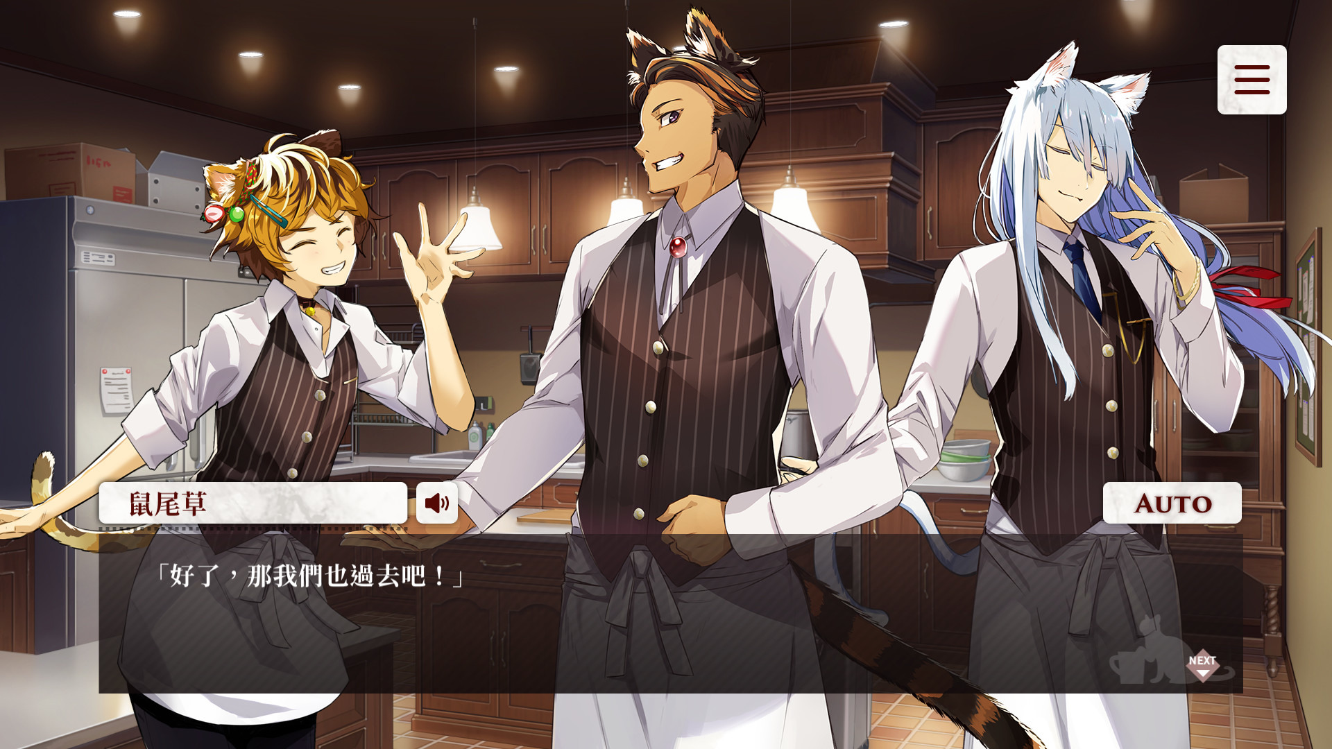 》是款戀愛冒險遊戲,遊戲舞台同樣設定在擁有人型化貓咪的世界,主角在祖父過世後,接管了咖啡廳的房子、也當上了店長,她無論如何都想要保留自己最愛的祖父的咖啡廳,但自己又不知道該怎麼做,結果在不知所措時,突然獲得了學校的提議、可採用住宿打工的研習生來幫忙一起營業,開心地接受提議後,結果出現在主角面前不是人類研習生,而是四隻肉食系貓咪男子?!進而開始了四隻貓與咖啡店女子的故事……。