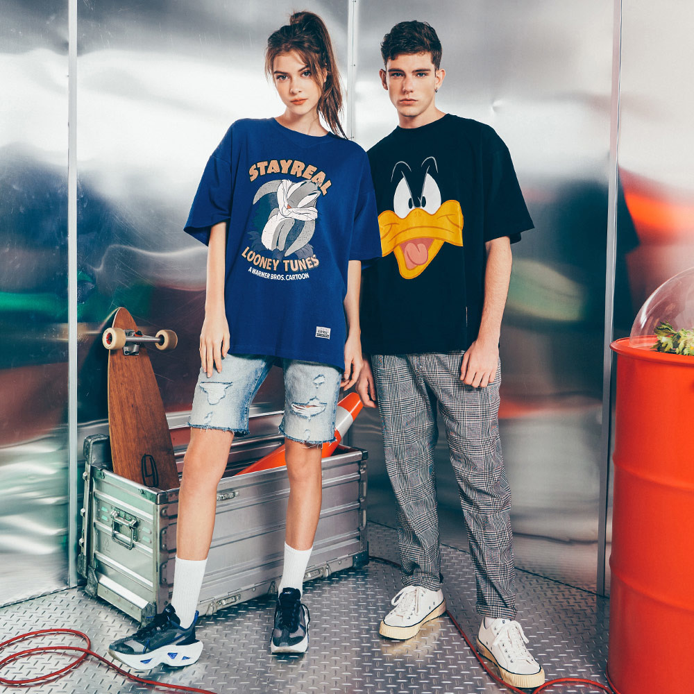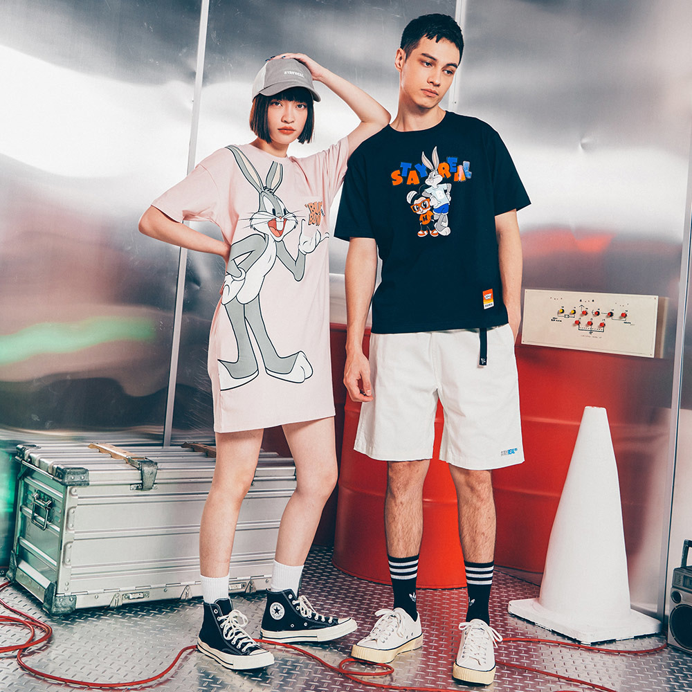 STAYREAL x LOONEY TUNES 樂一通聯名系列不僅推出多款獨家原創設計商品,還有以滿版人物設計重新詮釋出經典角色。STAYREAL 旗下的靈魂人物鼠小小這次也加入行列,跟兔巴哥一較高下。這回還有全新丹寧系列商品打造美式率性風格,包括丹寧吊帶褲、短褲與襯衫。