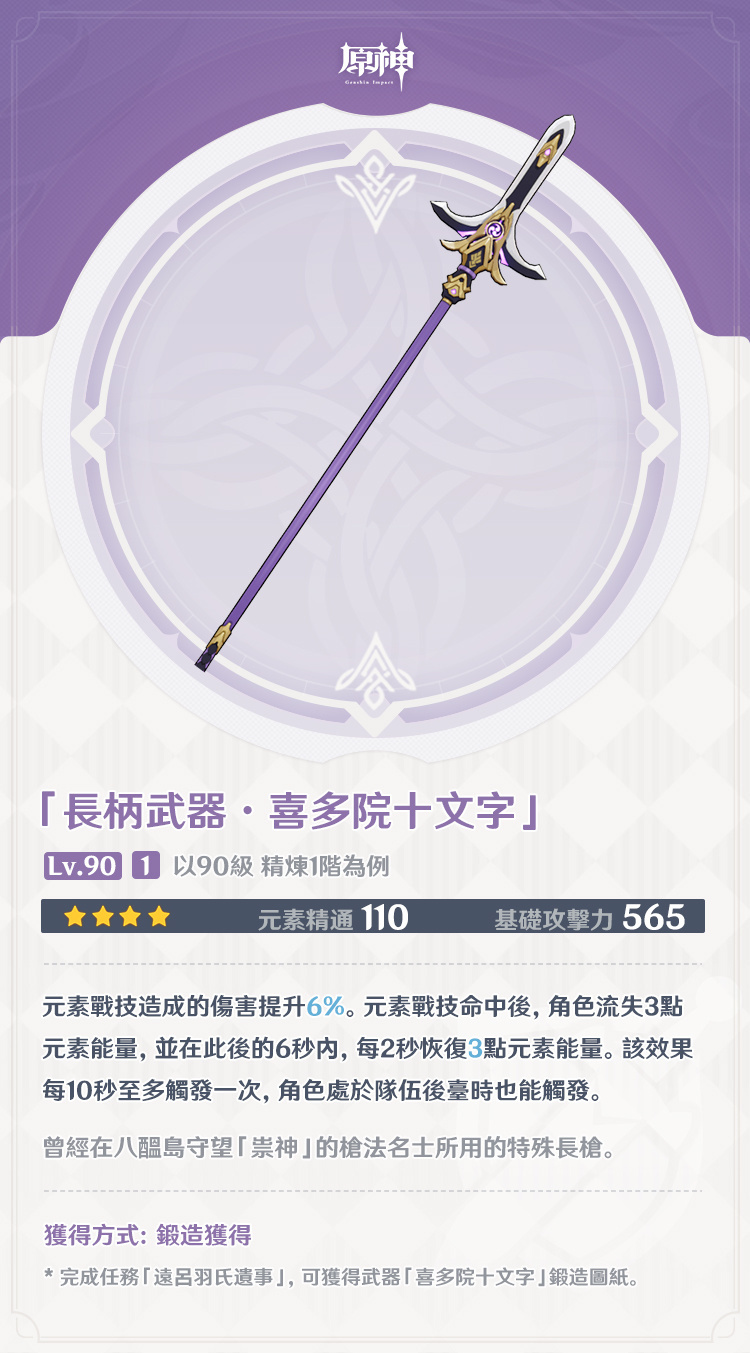 「單手劍·霧切之回光」、「長柄武器·天空之脊」機率 UP。活動期間,