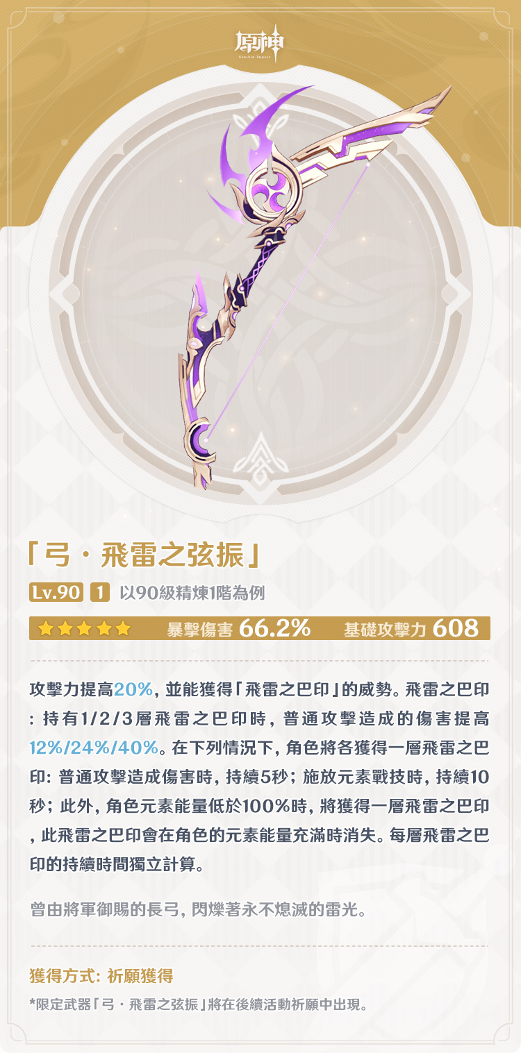 活動期間,四星武器「單手劍·西風劍」、「雙手劍·祭禮大劍」、「長柄武器·西風長槍」、「法器·西風秘典」、「弓·絕弦」的祈願抽取機率將大幅提升。